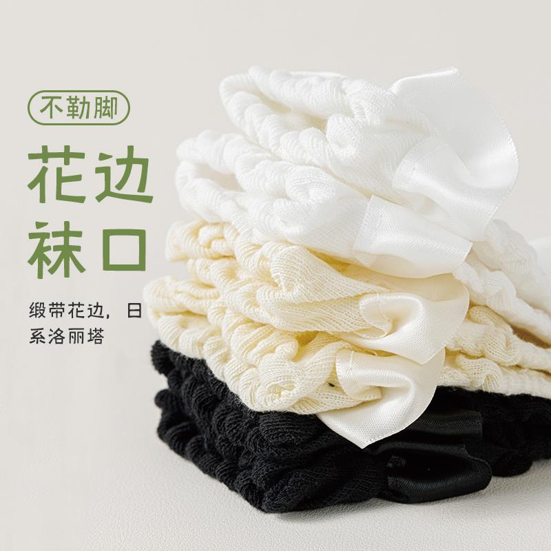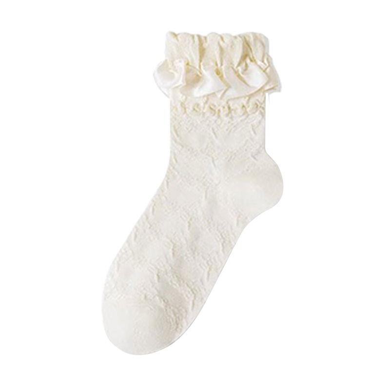 洛丽塔花边袜子女白色蕾丝中筒袜lolita春秋季 公主袜纯棉 配小皮鞋