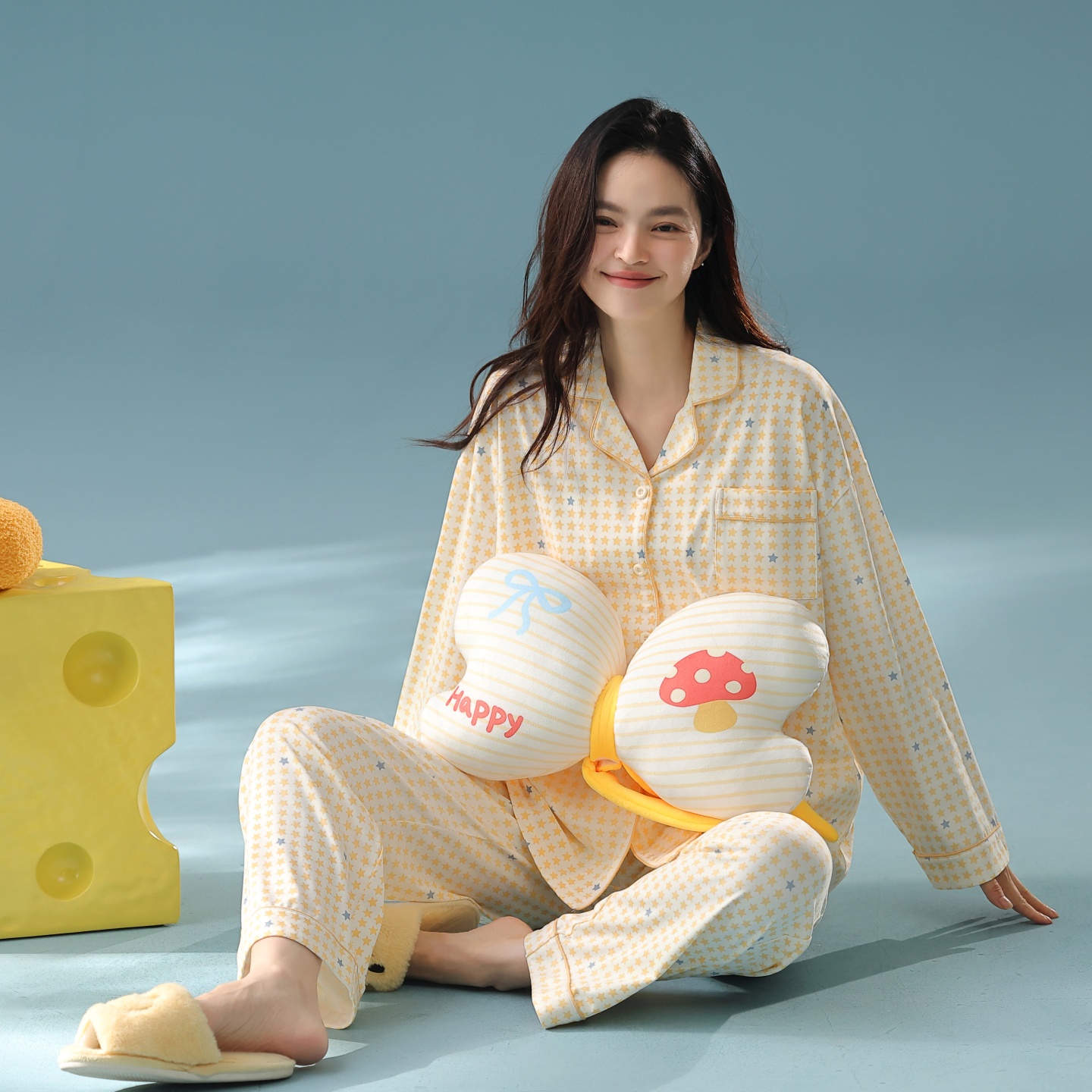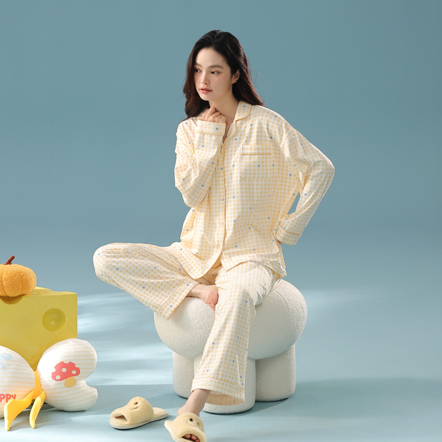棉质开衫 时尚 长袖 女款 休闲甜美抗菌家居服 套装 芬腾女士睡衣春秋季