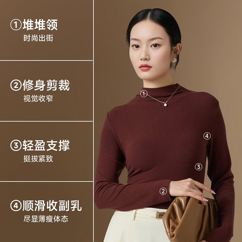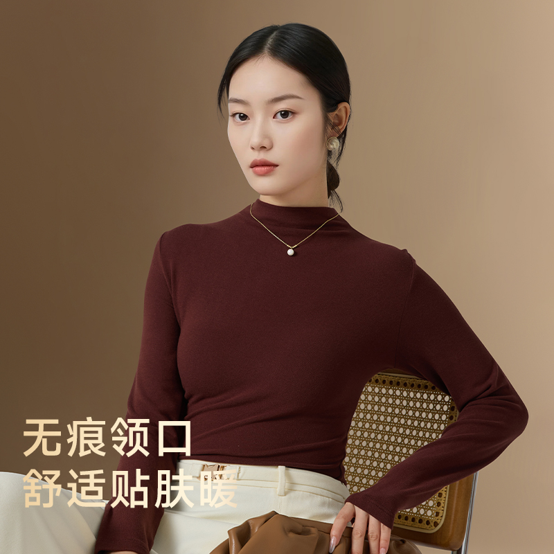 草本初色女士纯色半高领堆堆领保暖可外穿打底上衣