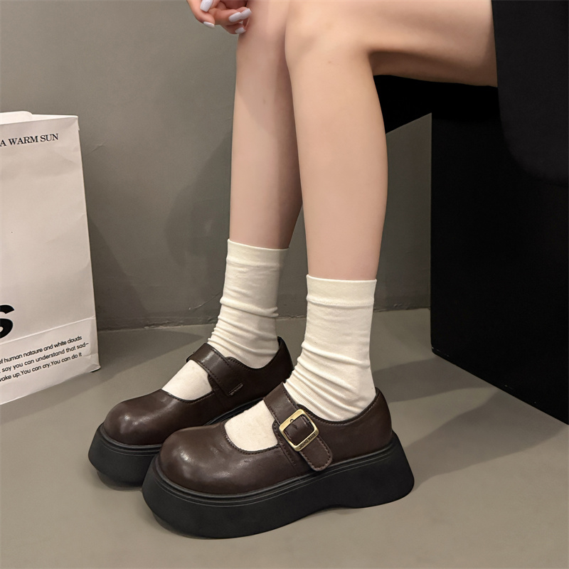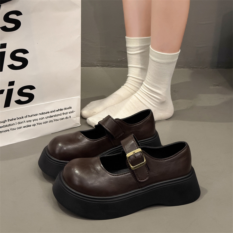 粗跟高跟鞋 百搭浅口单鞋 女秋配裙子2025新款 英伦厚底玛丽珍小皮鞋