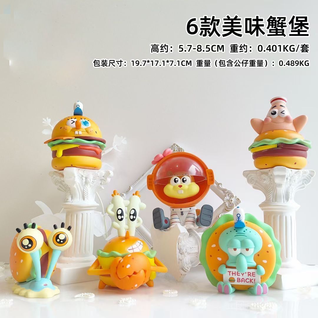 海绵宝宝盲盒汉堡王蟹黄煲系列派大星章鱼哥手办潮玩车载桌面摆件