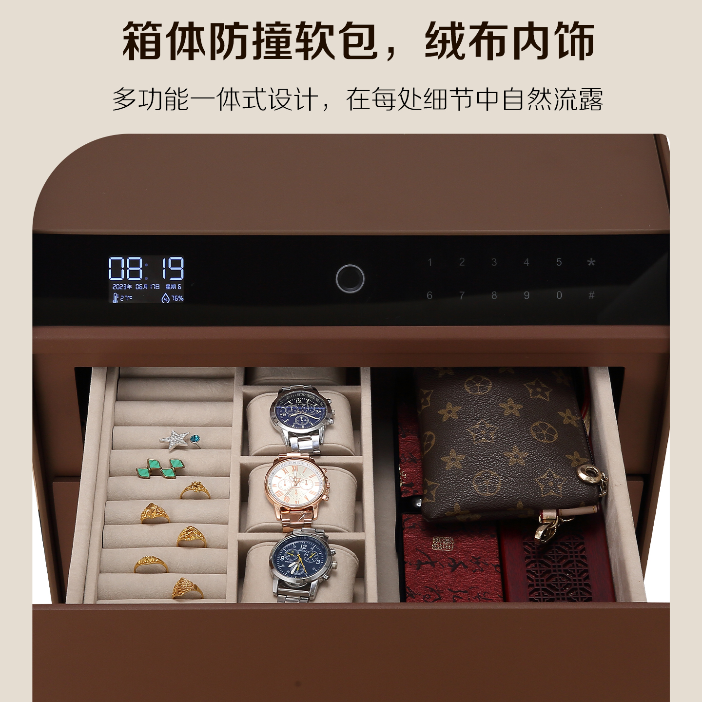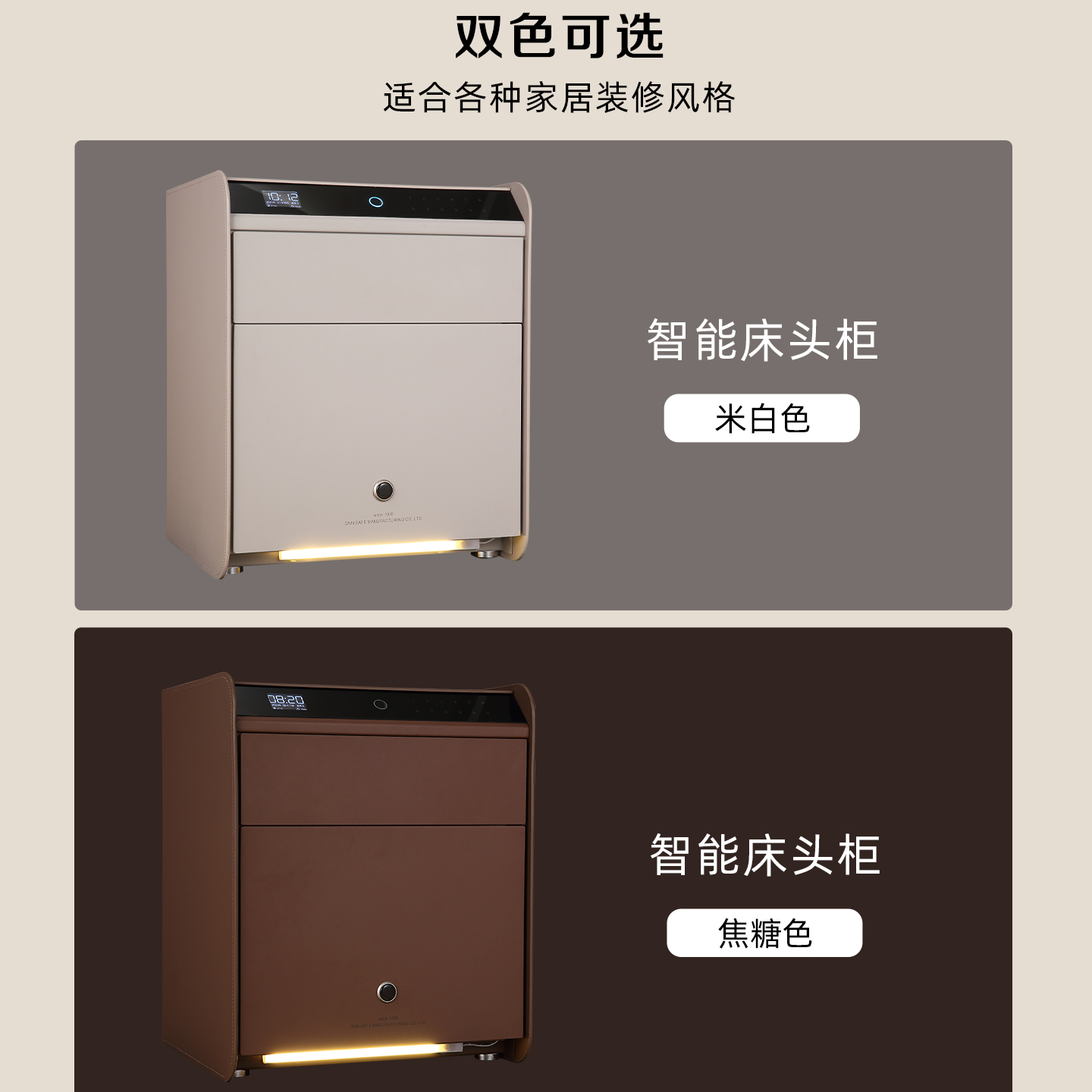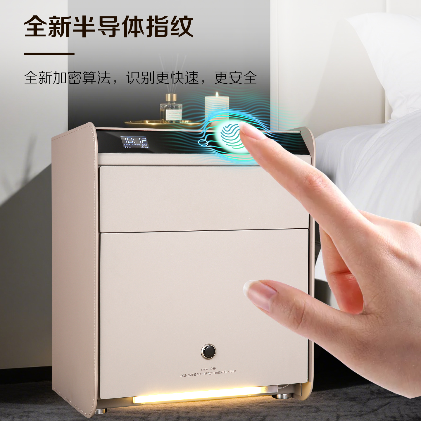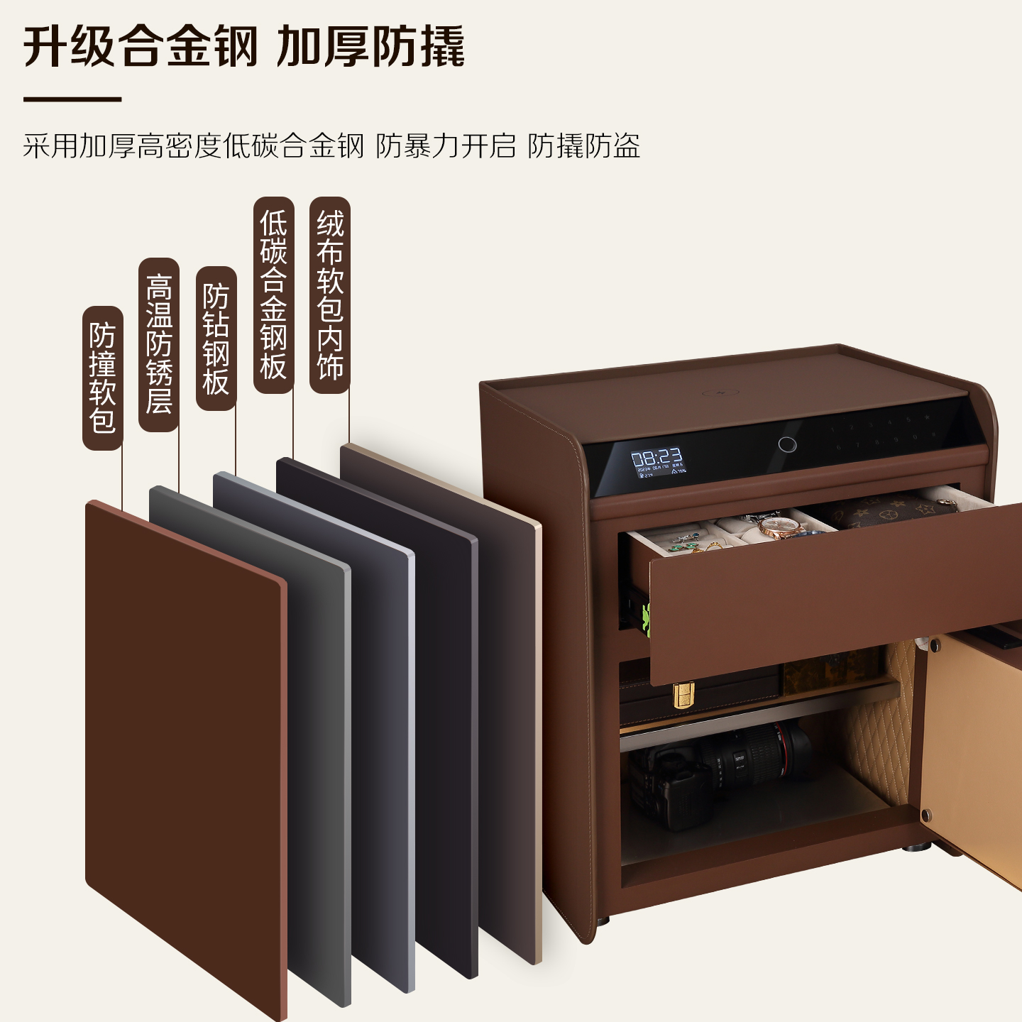 博锐卡床头保险箱一体柜家用防盗保险柜小型2025款 双门上抽下柜多功能无线充电办公室保管箱 智能APP指纹密码