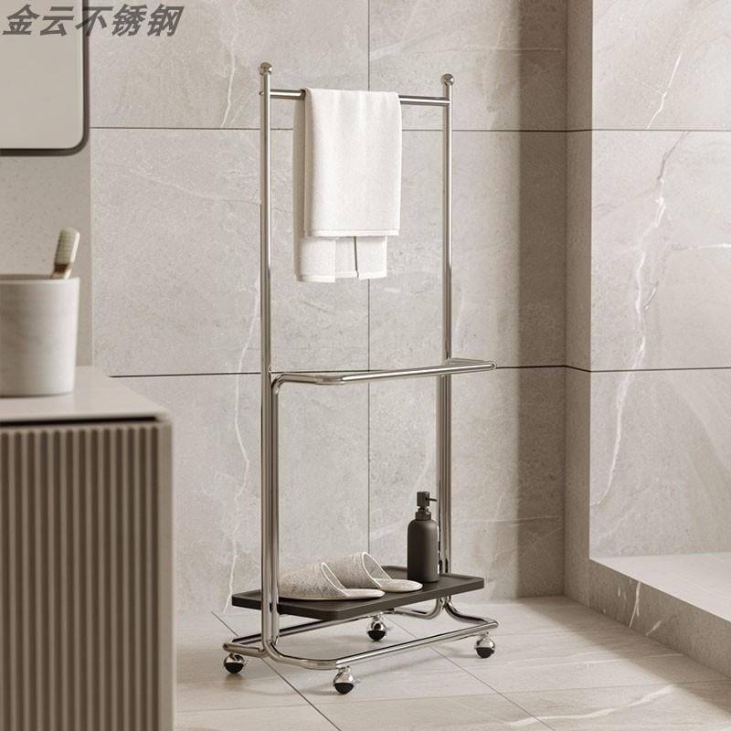 新款 可移动带滚轮衣帽架子家用多功能浴室收纳浴巾架 不锈钢落地式