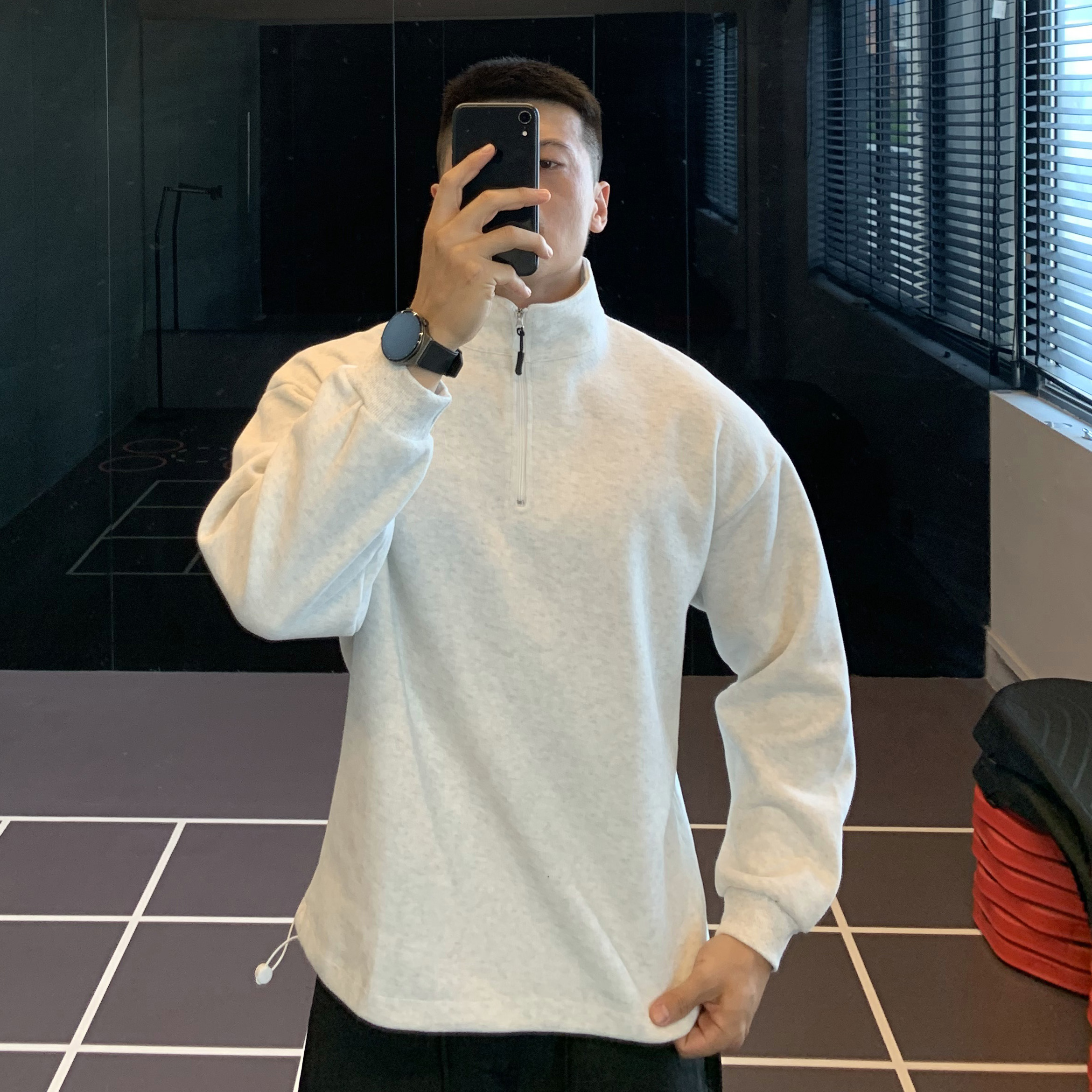 卫衣白色2025秋冬内搭打底衫 260g重磅小领口长袖 T恤男纯棉春秋款