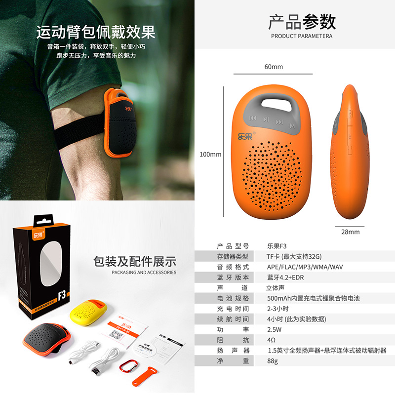 Nogo F3无线蓝牙音箱低音炮随身运动骑行徒步跑步小音响插卡 乐果