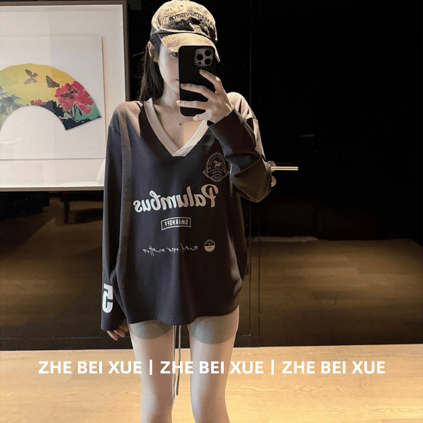 2025早秋季 t恤女款 气质慵懒风宽松显瘦百搭上衣 复古潮流长袖 美式