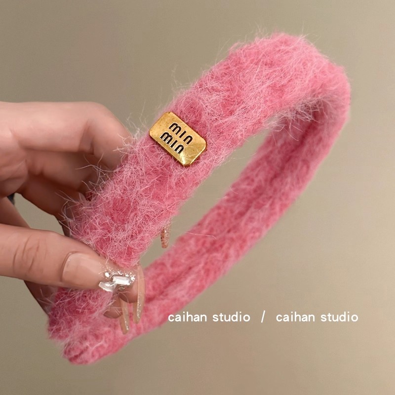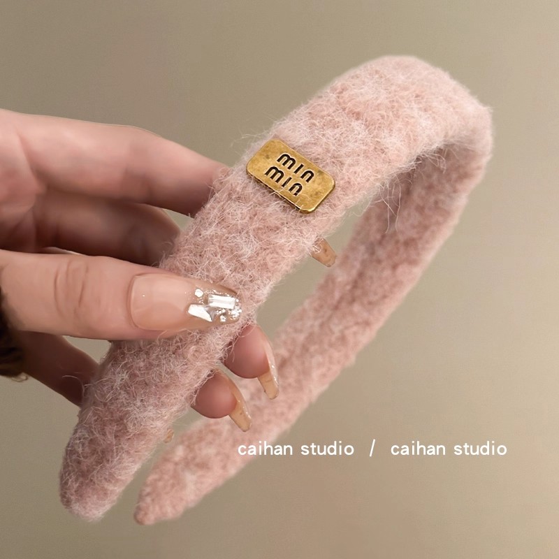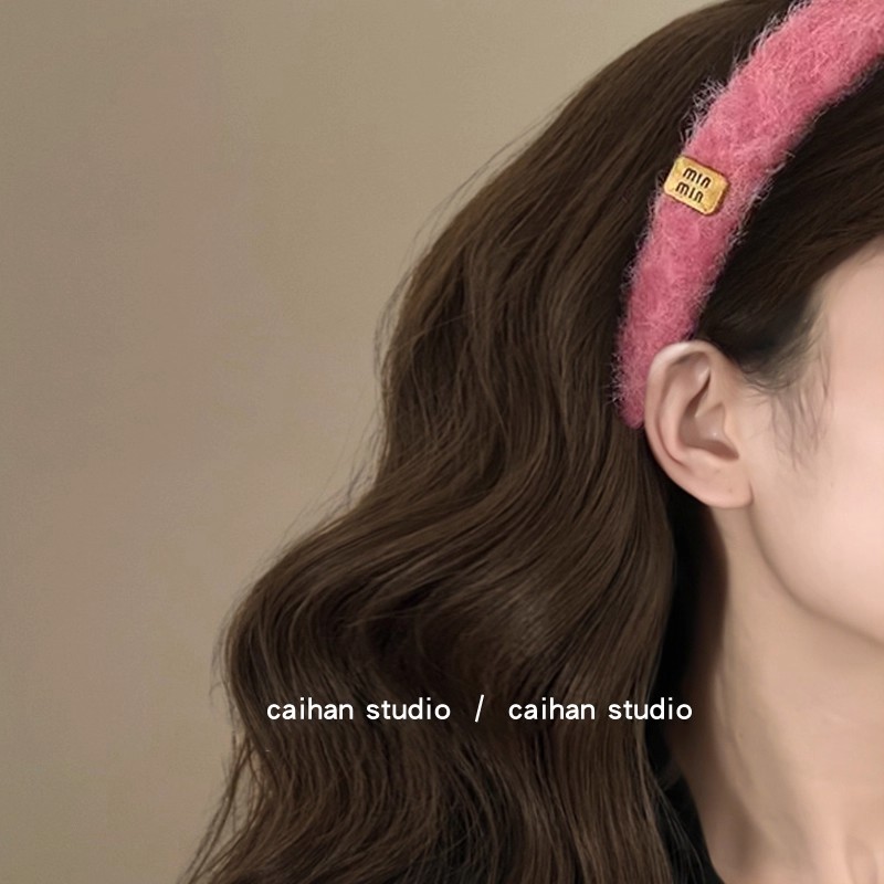 初次心动 毛线字母金标发箍女复古增高颅顶发卡秋慵懒风服饰拎环