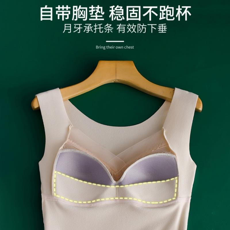 南极人德绒发热内衣无痕保暖背心女士加绒打底上衣带胸垫冬季 内搭