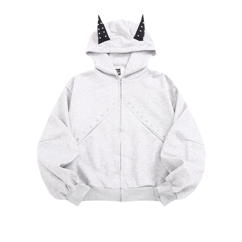 情侣休闲上衣 外套美式 MEMZ铆钉连帽卫衣男女秋季 潮牌杜宾犬角帽衫