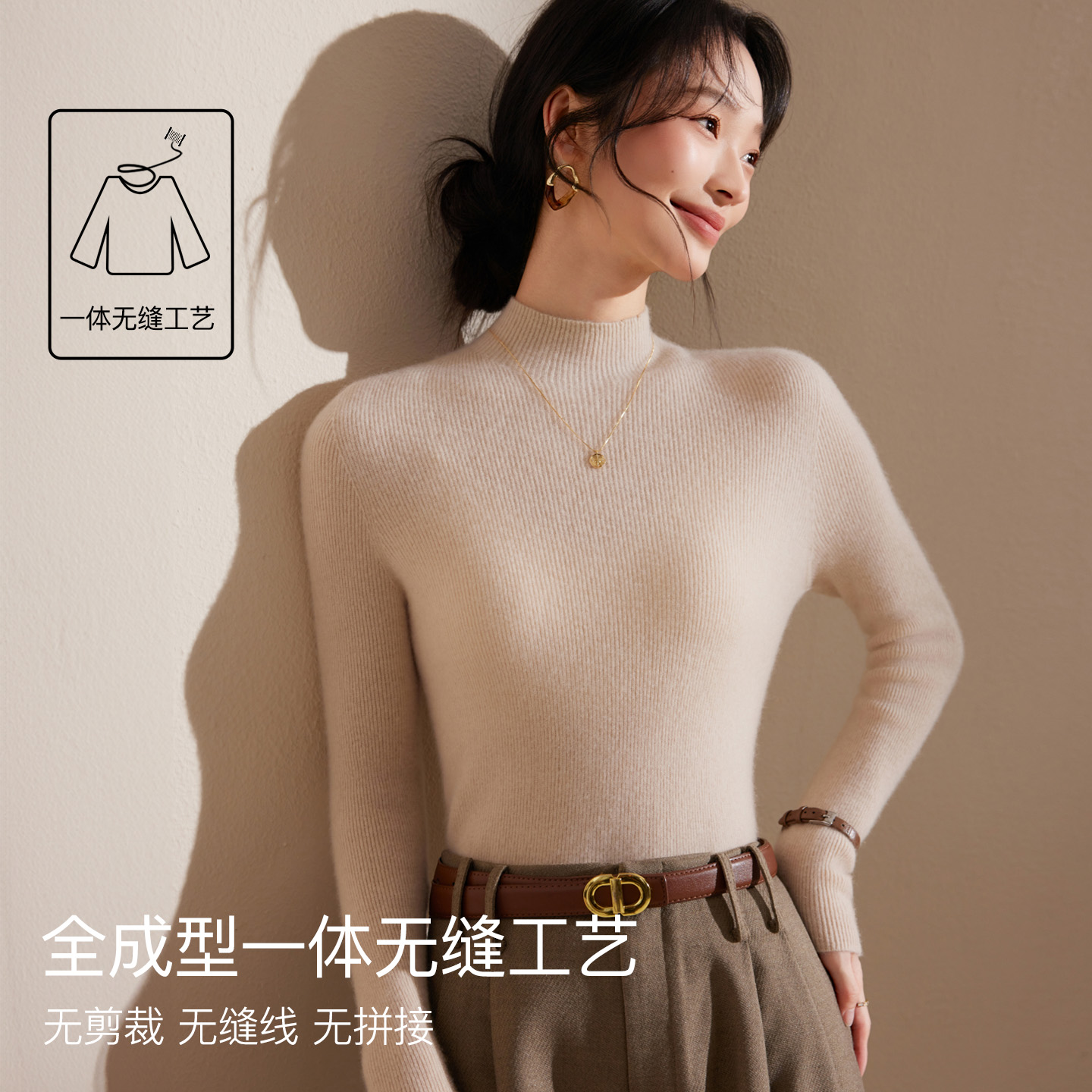 秋冬羊毛黑色内搭修身 2025新款 毛衣上衣 女半高领打底衫 猫人针织衫