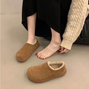 女加绒保暖一脚蹬女鞋 棉鞋 子2025新款 豆豆鞋 冬季 小土豆平底勃肯鞋