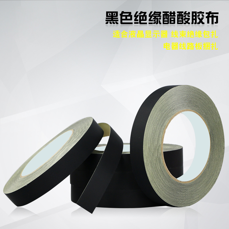 黑色醋酸胶布耐高温无痕自粘绝缘胶带阻燃高粘电器液晶屏手机维修屏线汽车线束固定抗老化电器维修醋酸布胶带