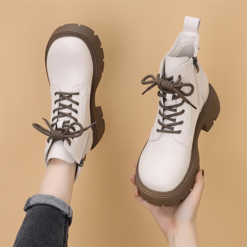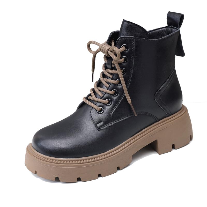 美拉德棕色靴子厚底黑色短靴 秋复古女鞋 英伦风马丁靴女款 2025新款