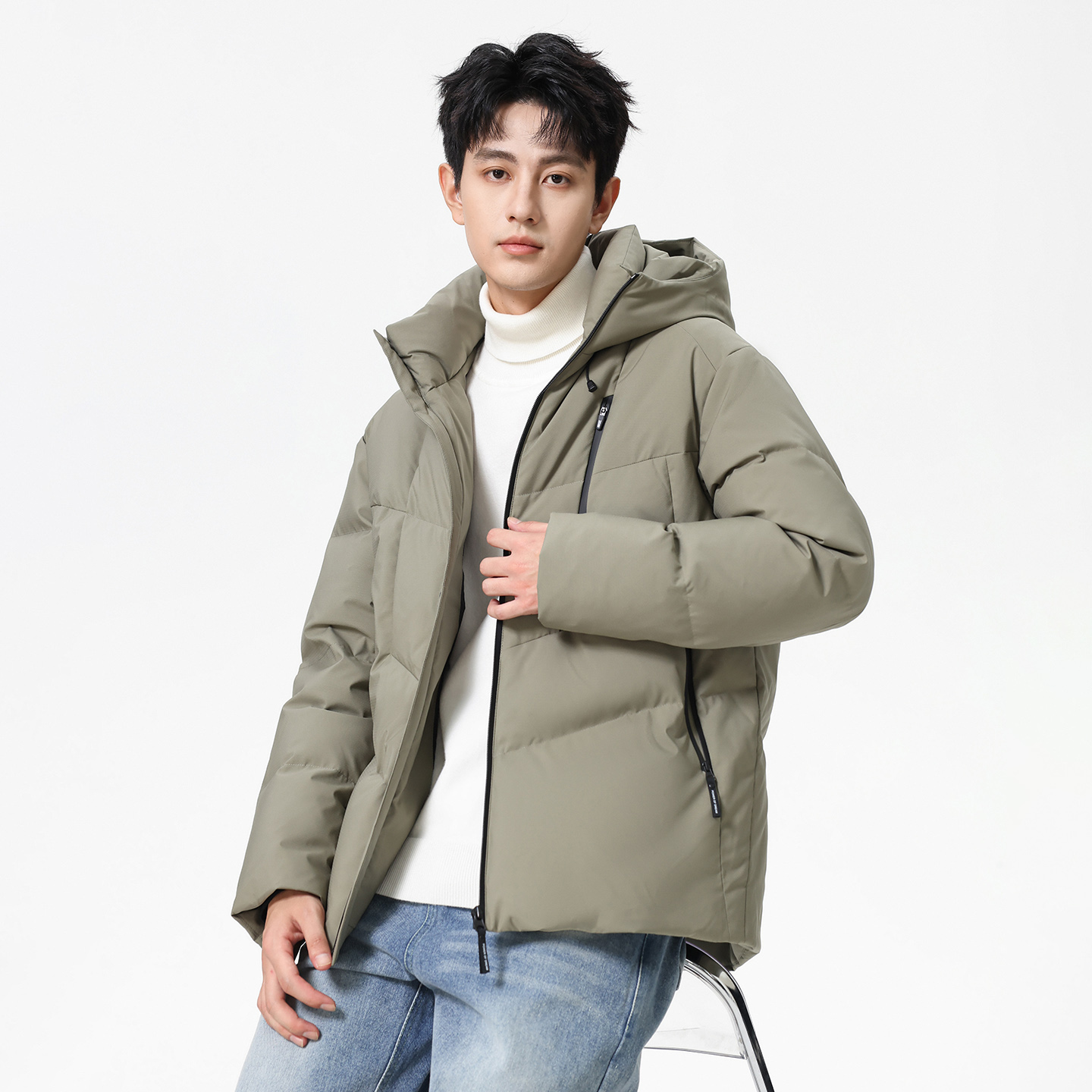 提花面料保暖外套 新款 hansca90白鸭绒高密防风羽绒服男士 2025冬季