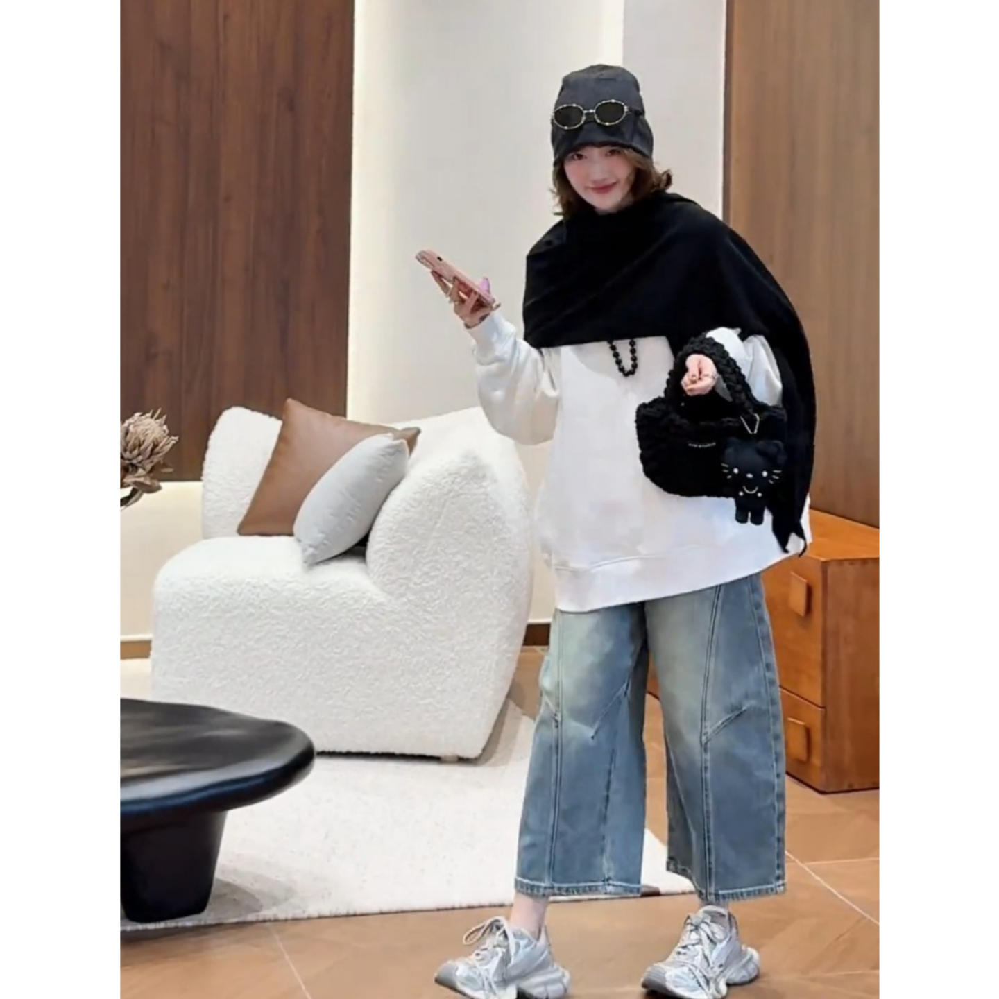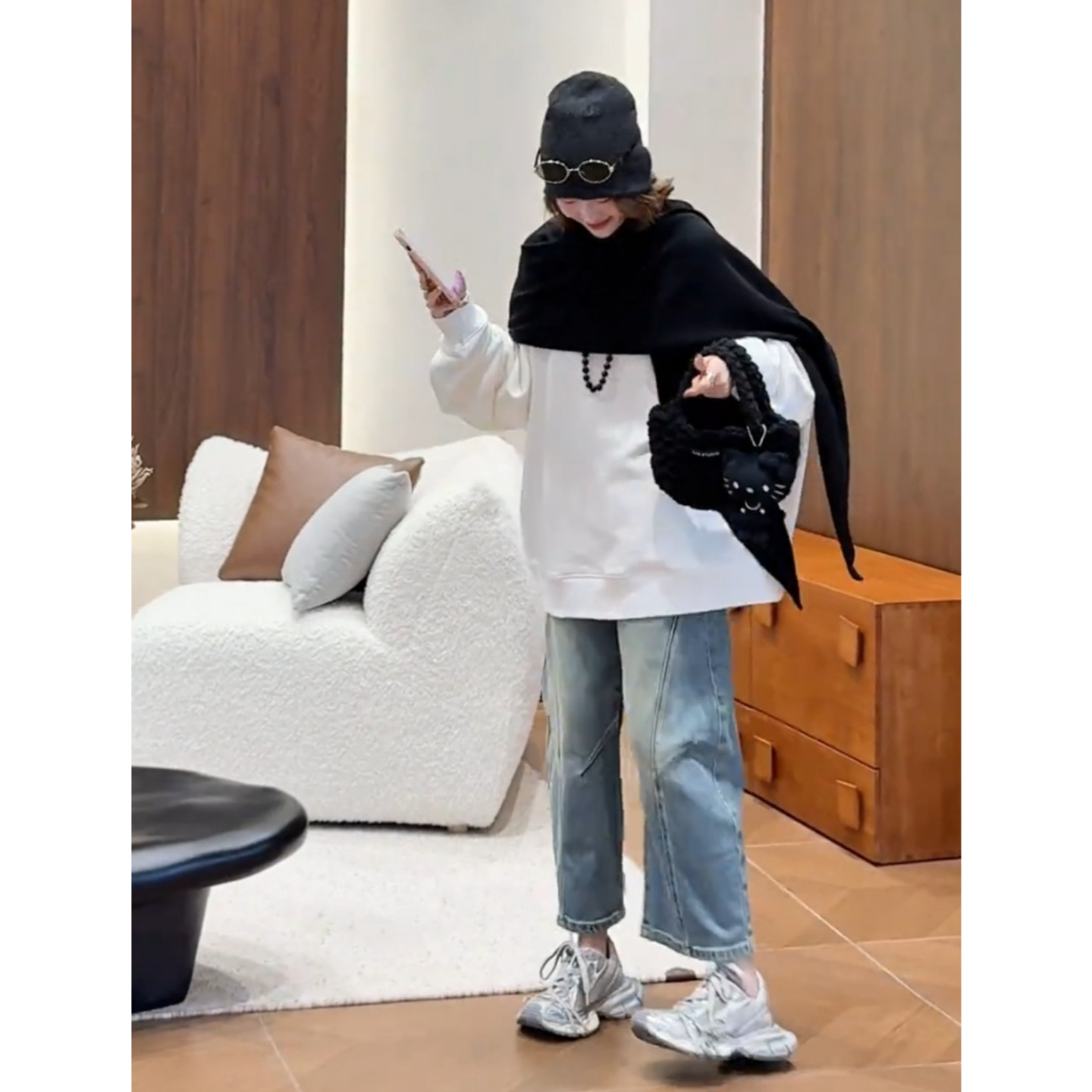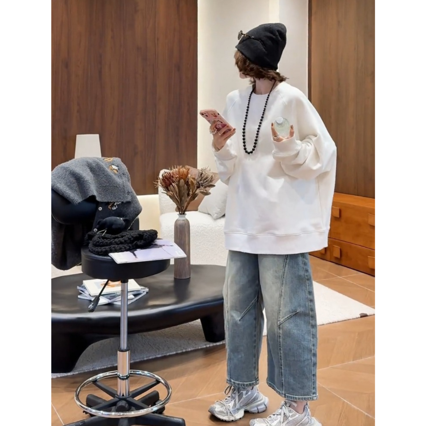 宽松慵懒风高级感上衣秋季 白色圆领重磅卫衣女2025新款 miu系韩版