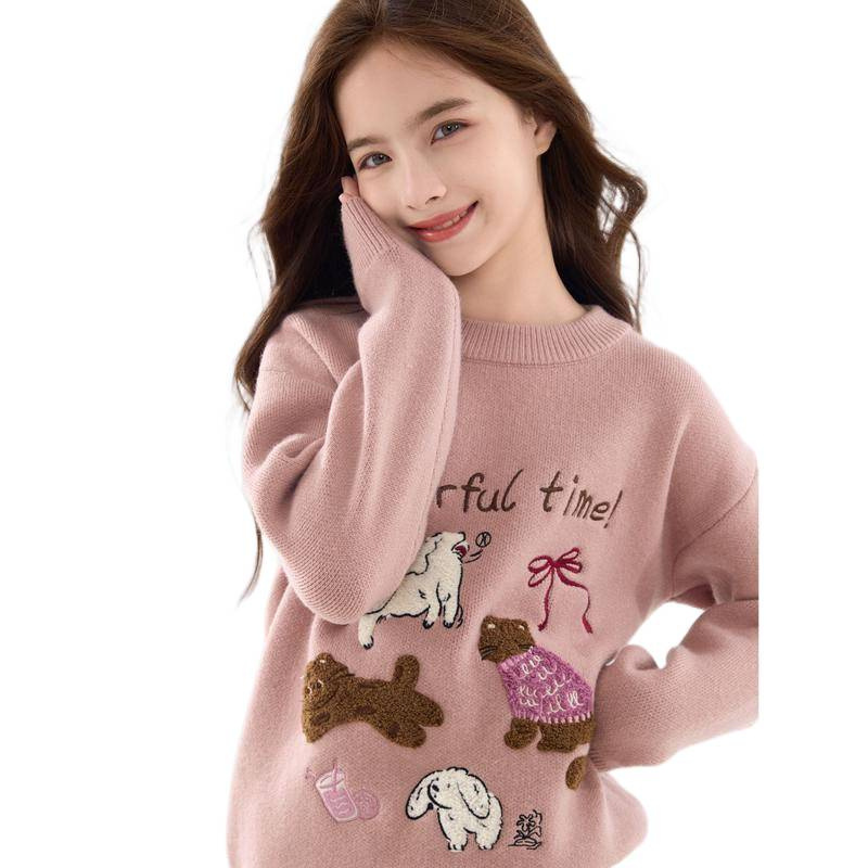新款 女2025秋季 宽松圆领毛衣 针织开衫 飞鸟和新酒插肩袖