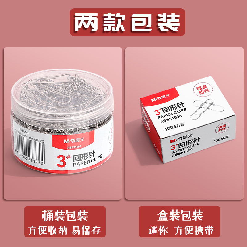 晨光回形针针镀镍金属曲别针加厚电镀3号便携衣服固定书签针环形针办公用品收纳DDBY