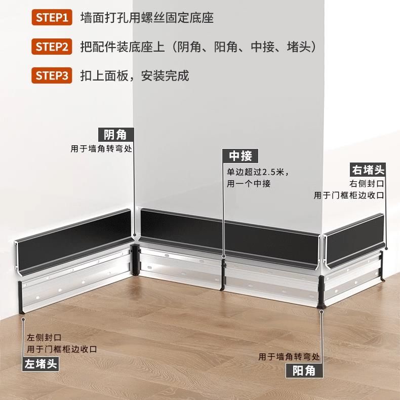 铝合金踢脚线卡扣式 金属极窄网红贴脚线条6cm8cm公分不锈钢地脚线