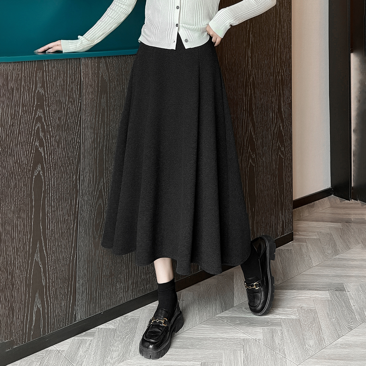 羊毛呢a字半身裙女2025秋冬季 气质优雅通勤显瘦大摆中长伞裙 新款