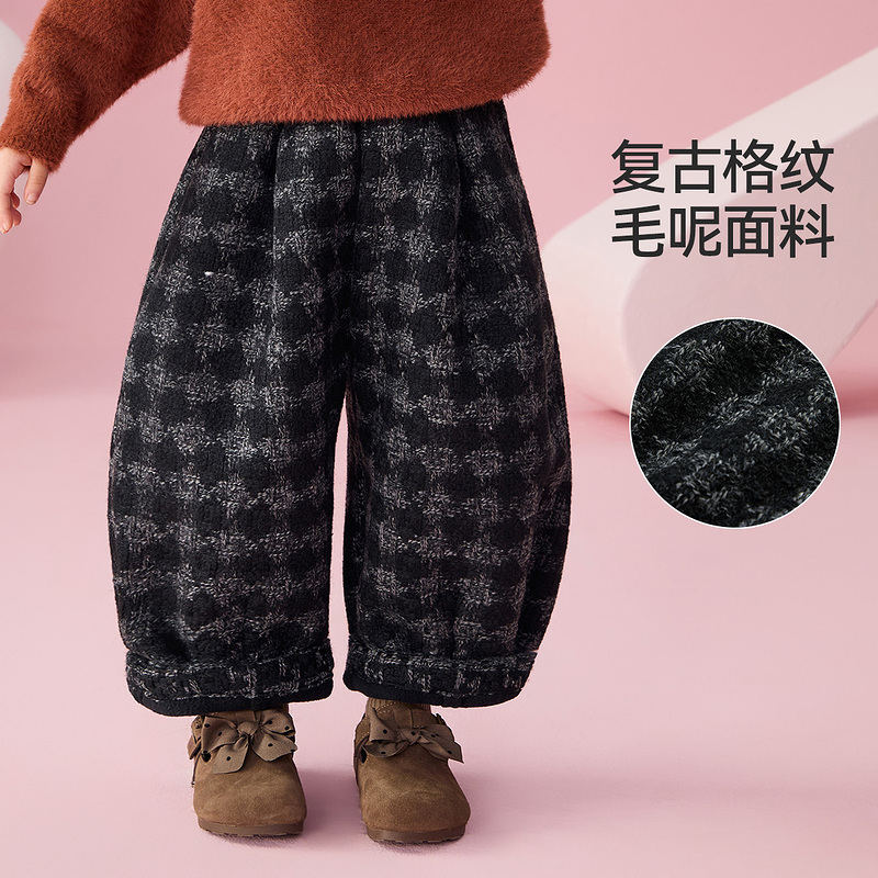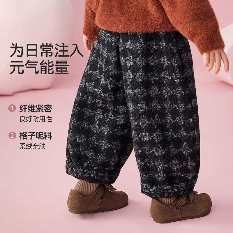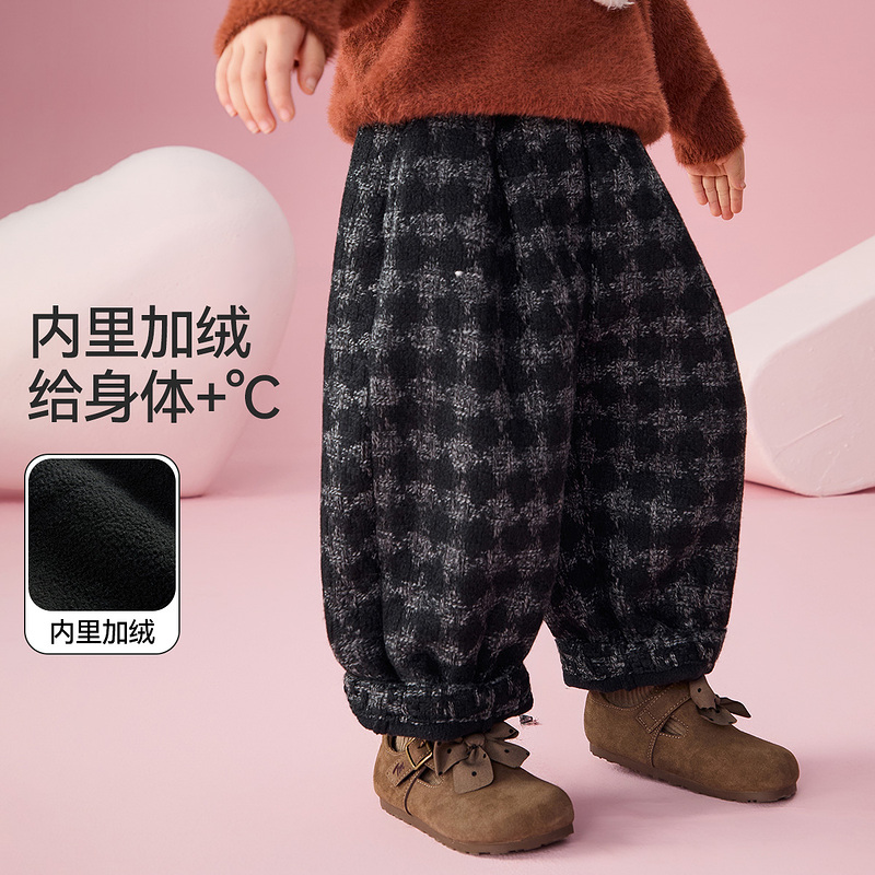 秋冬女宝宝直筒裤 ASK女童休闲裤 子2025新款 儿童加绒裤 格子潮 秋装