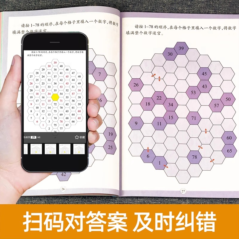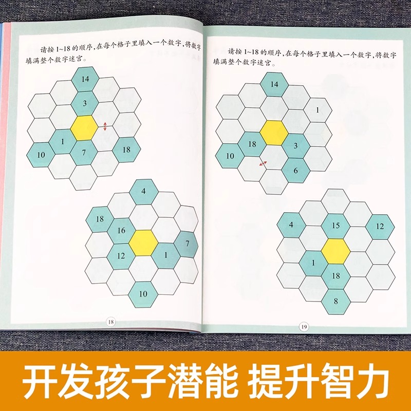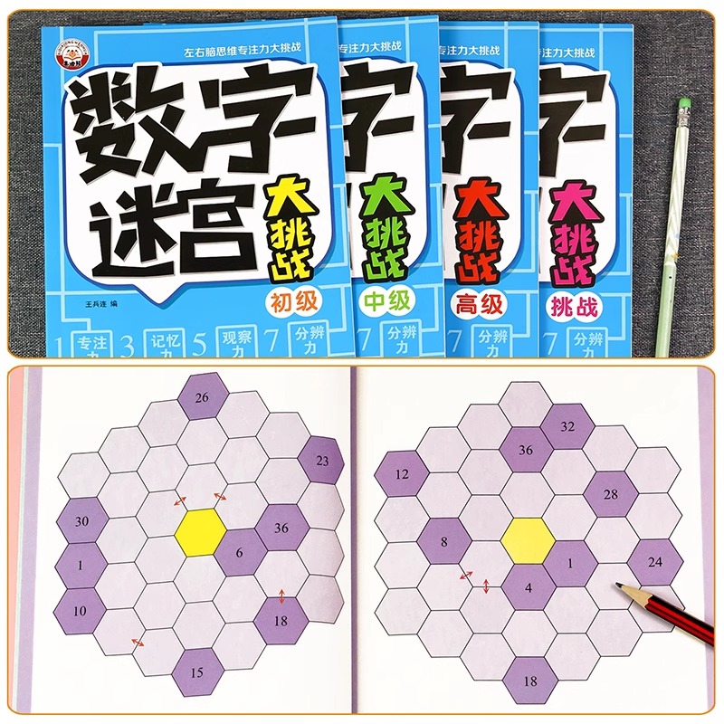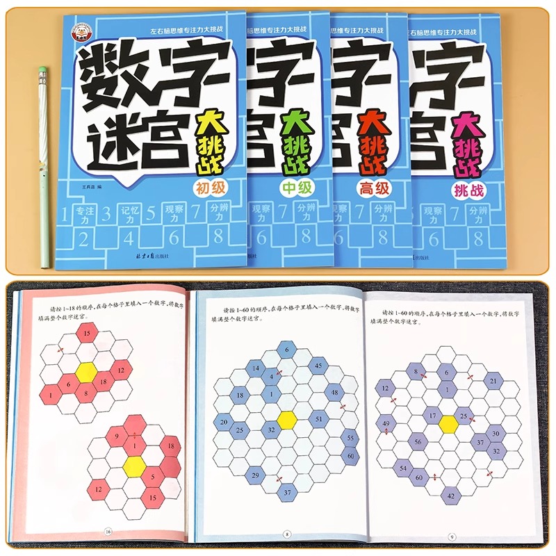 儿童数字迷宫游戏专注力训练书益智早教幼儿智力思维开发sz儿童专注力训练数学启蒙全脑开发数字迷宫思维游戏训练书5 6到8岁 10岁3