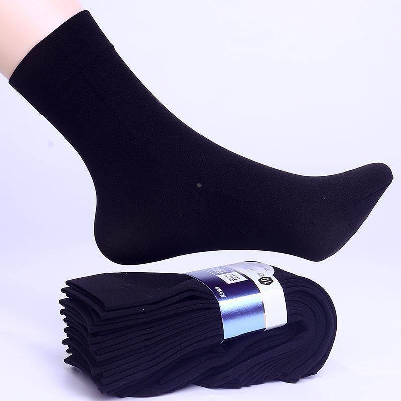 浪莎纯棉袜子男中筒秋冬加厚防臭吸汗全棉春秋男士 黑色商务长筒袜