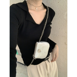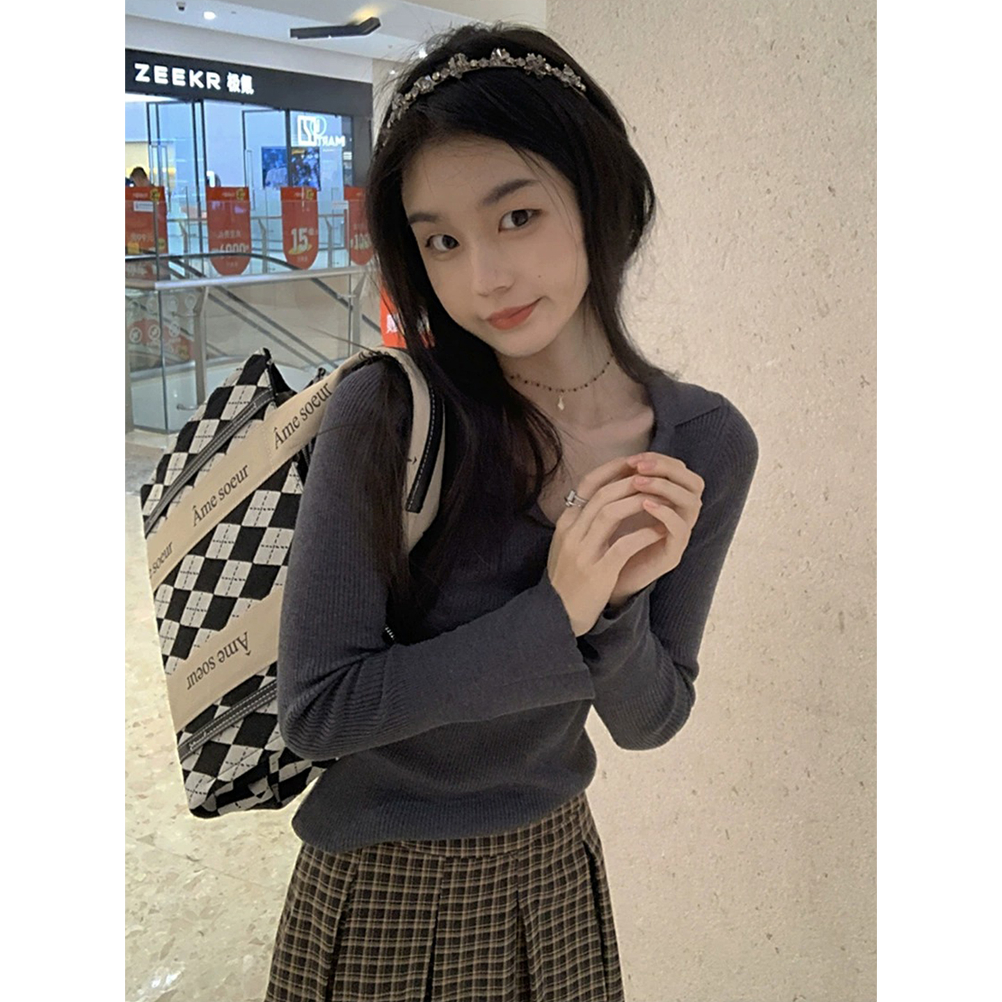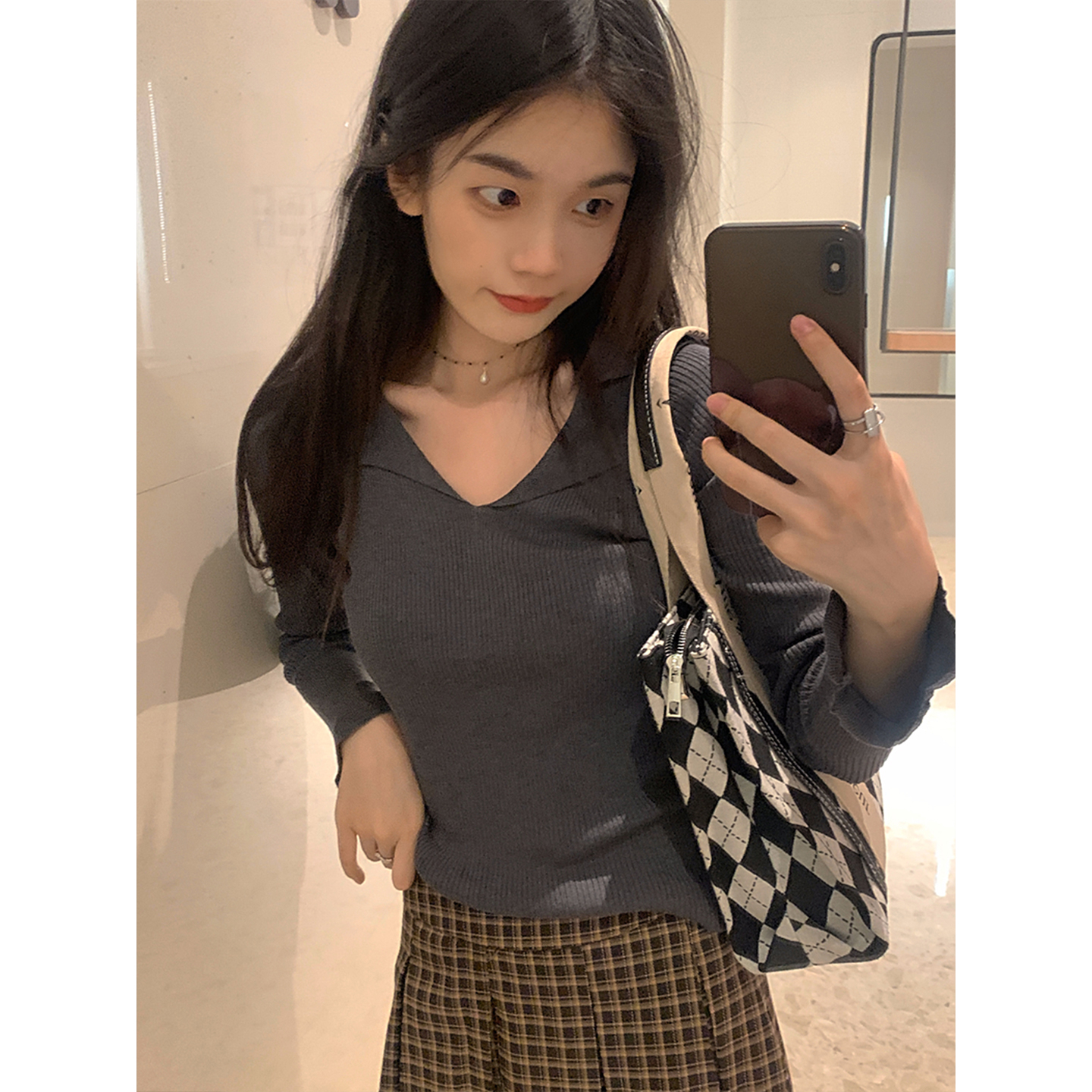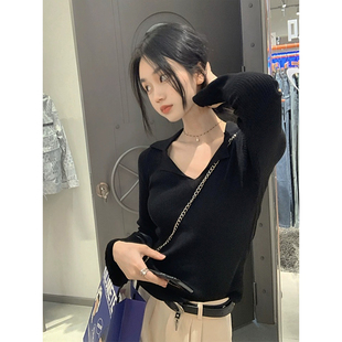 洋气polo领针织衫 女秋冬显瘦内搭长袖 胖mm显瘦v领毛衣打底衫 大码