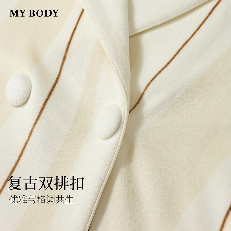 家居服 秋冬睡衣女复古双排扣毛绒绒青果领长袖 商场同款 MYBODY新款