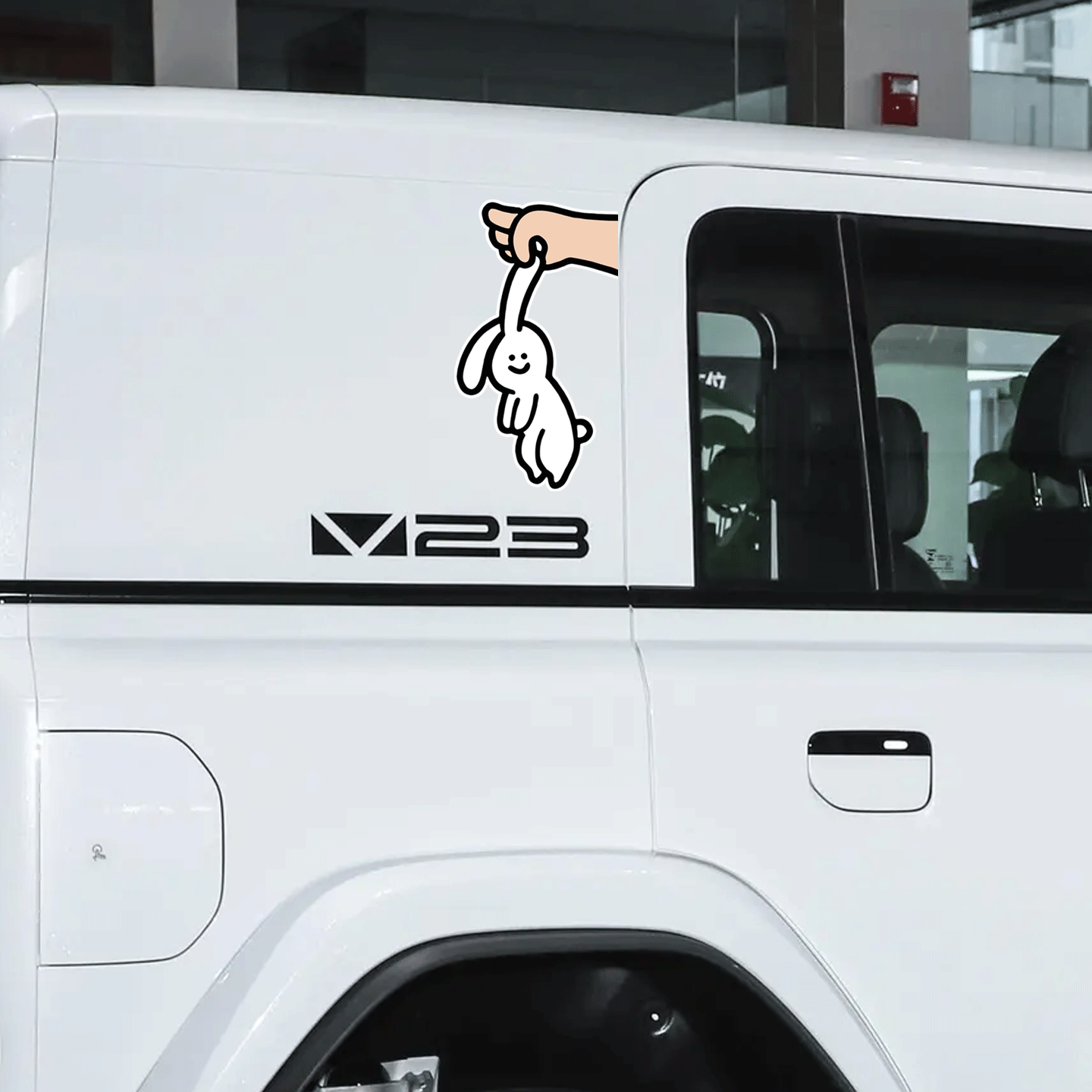 可爱兔子装 创意车窗贴电动车贴画防水 饰汽车贴纸卡通划痕遮挡个性