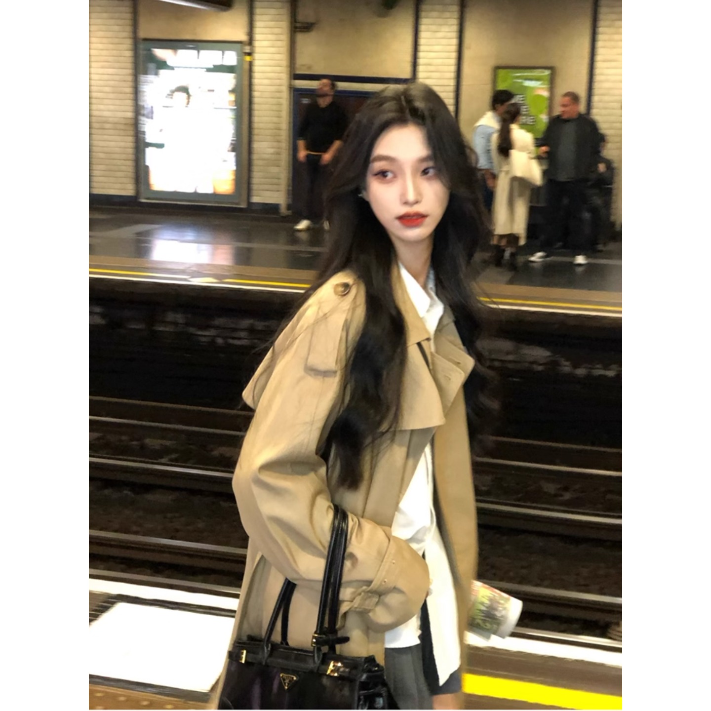 风衣 CUBIC松弛通勤全棉廓形立体翻领抽绳卡其色短款 nana同款