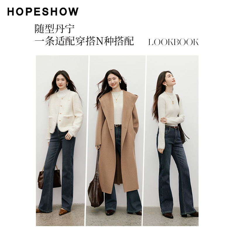House 复古做旧阔腿裤 百家好垂感高腰牛仔弯刀裤 新款 女秋季 Basic