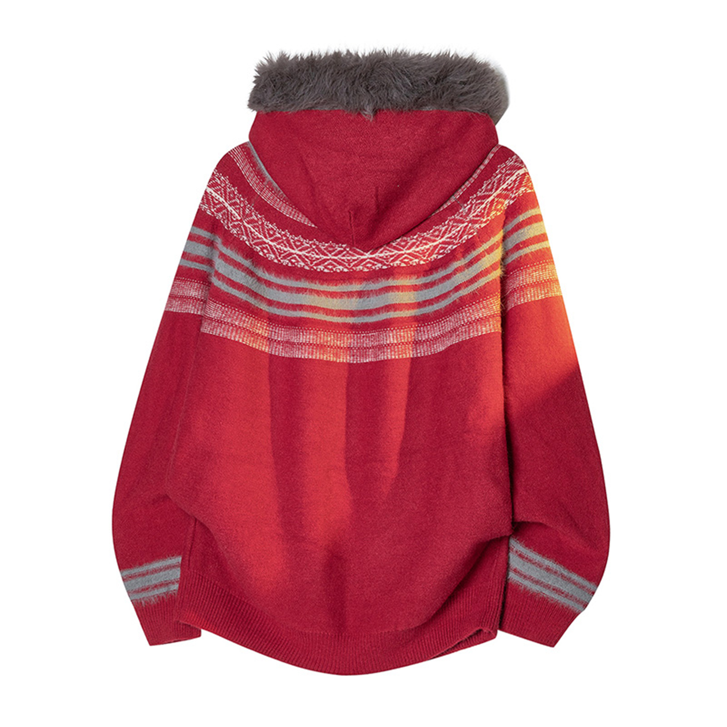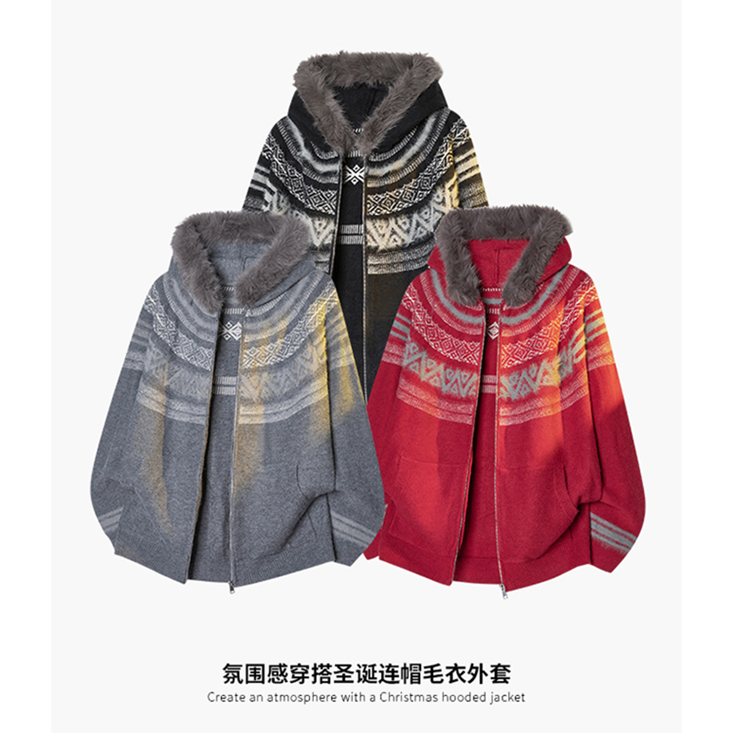 双拉链连帽针织开衫 撞色长袖 女秋季 休闲修身 毛衣外套 新款 紫涵短款