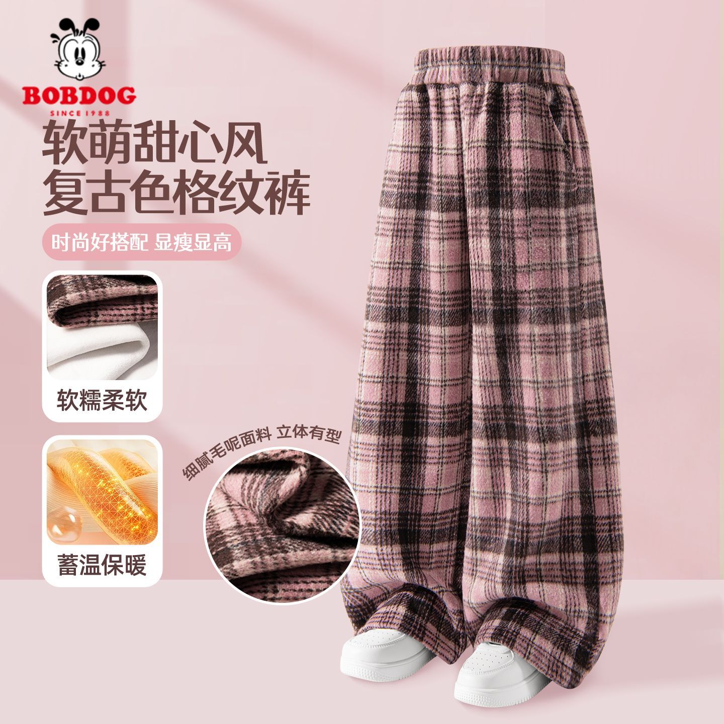 胖mm慵懒风松弛感加绒运动休闲裤 大码 女冬季 奶芙阔腿裤 子 黑色卫裤