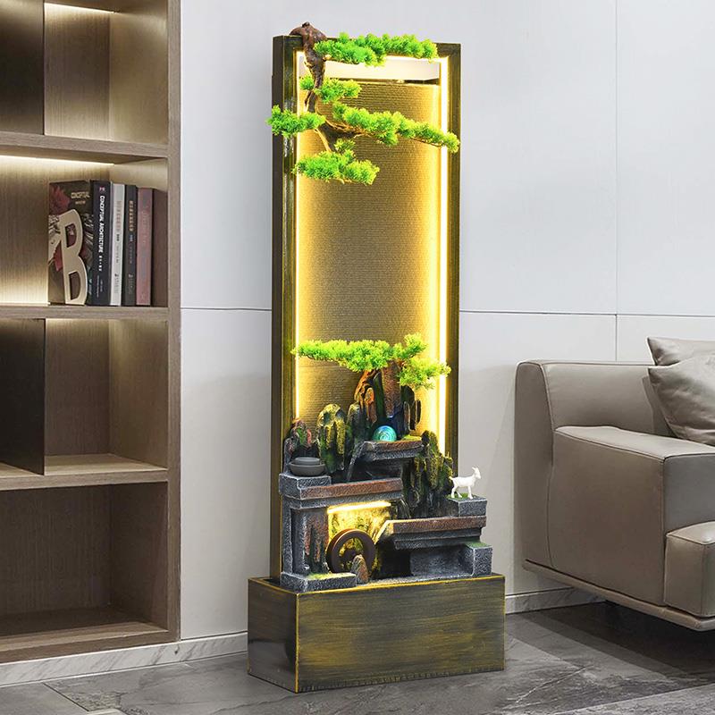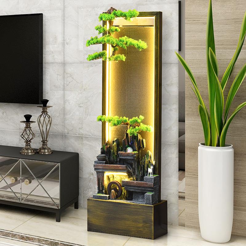 大型循环流水摆件水幕墙开业招财风水轮室内新居乔迁装 饰礼品落地