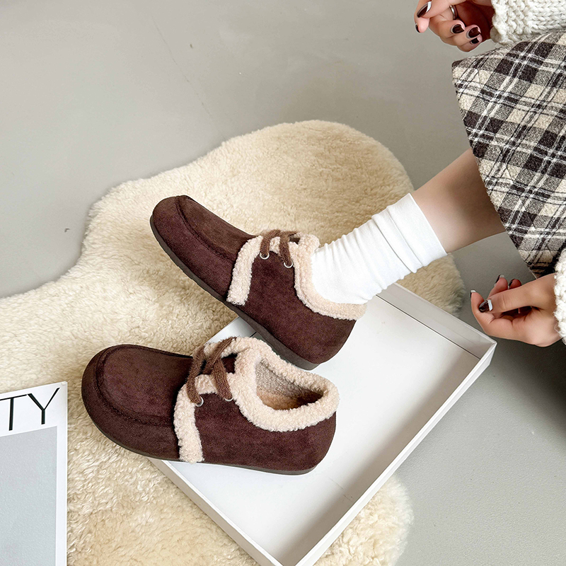羊羔毛毛鞋 防滑孕妇棉鞋 加绒保暖勃肯豆豆一脚蹬女鞋 雪地靴女冬季