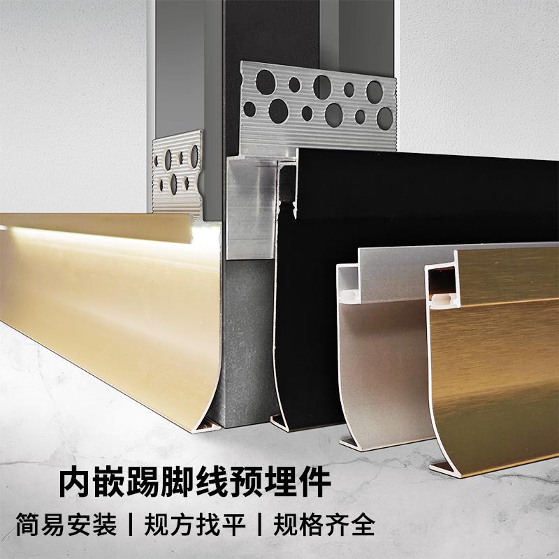 铝合金发光踢脚线嵌入式 可弧形带灯地脚线led灯带内嵌金属贴脚线