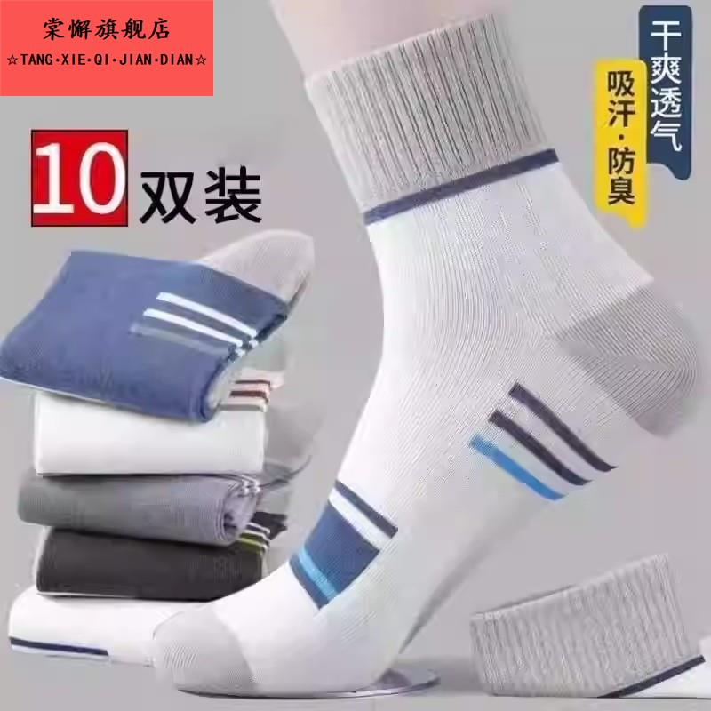 薄款 运动袜子防臭吸汗透气中筒袜春秋季 商务百搭潮袜子 男士 20双装