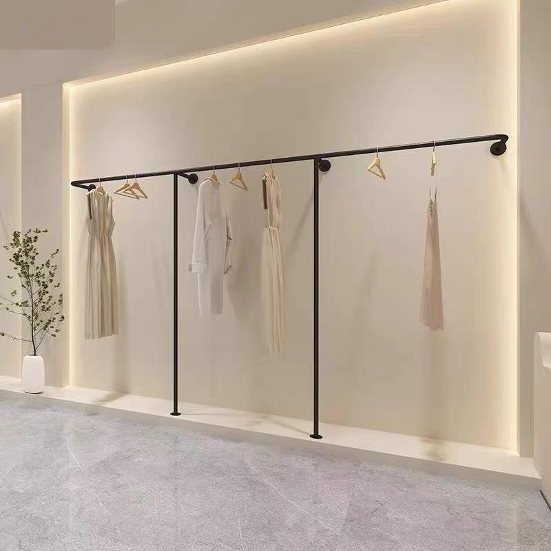 店货架简约落地陈列架 男女装 服装 店展示架上墙黑色衣服架子壁挂式