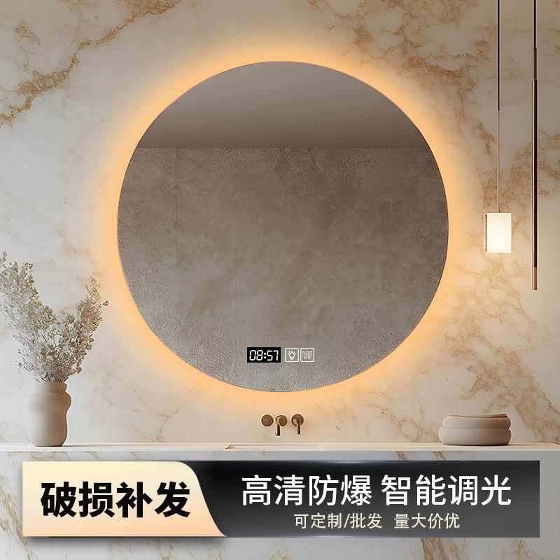 智能圆形浴室镜时尚 带led带灯触控屏幕可发光防雾感应挂墙可定制