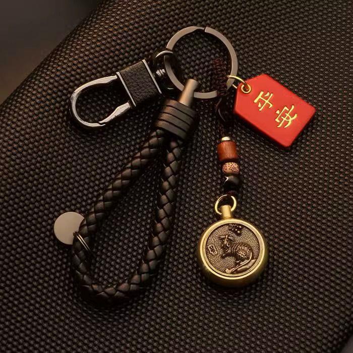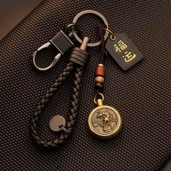 男女汽车钥匙扣黄铜十二生肖钥匙链手工挂件复古创意男转钱手把件