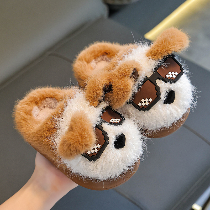 卡通可爱防滑室内居家软底亲子女宝宝毛毛棉鞋 儿童棉拖鞋 男童冬季
