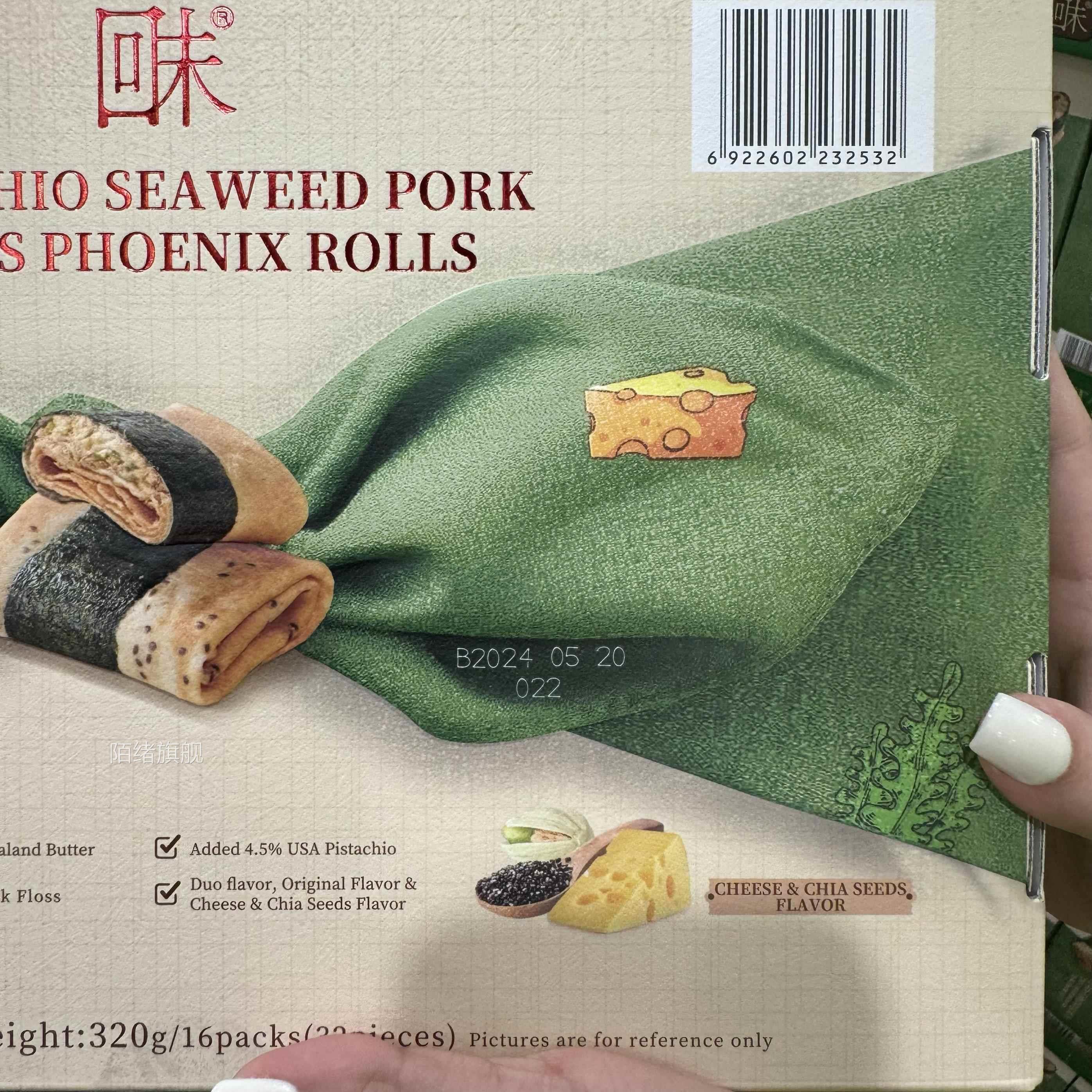 山姆代购 回未开心果海苔肉松凤凰卷蛋卷320g双拼口味下午茶小吃