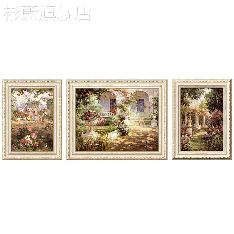 壁画风 美式 网红简饰欧厅客厅沙发景景墙装 画三联画现代餐挂画欧式