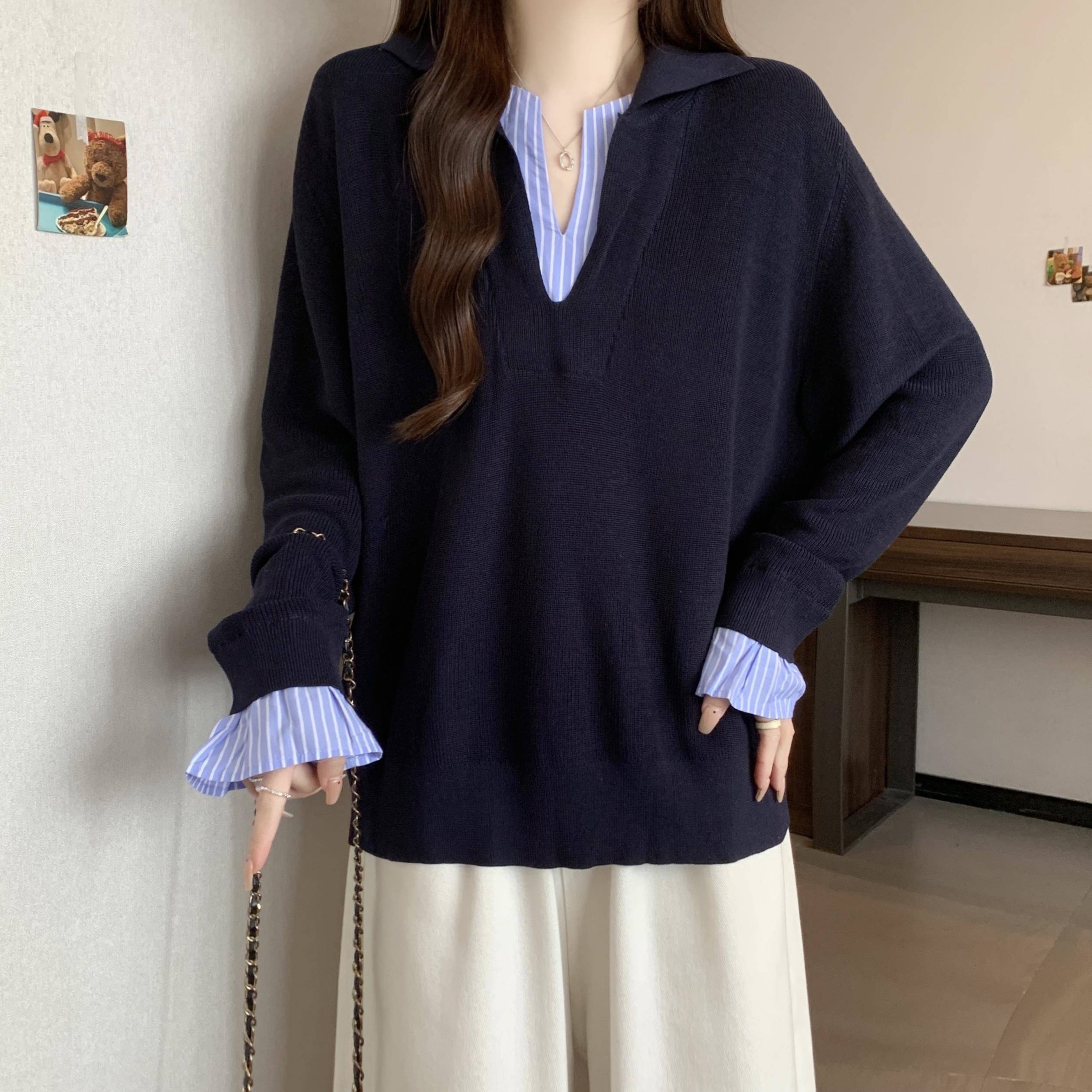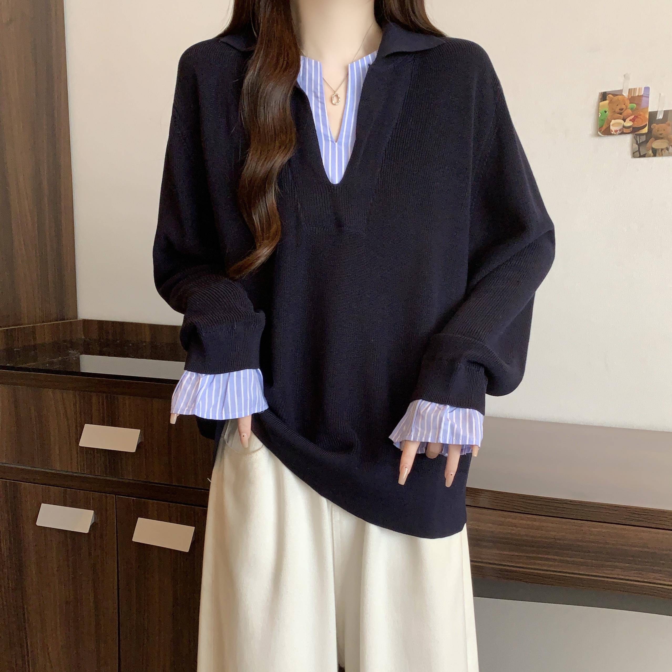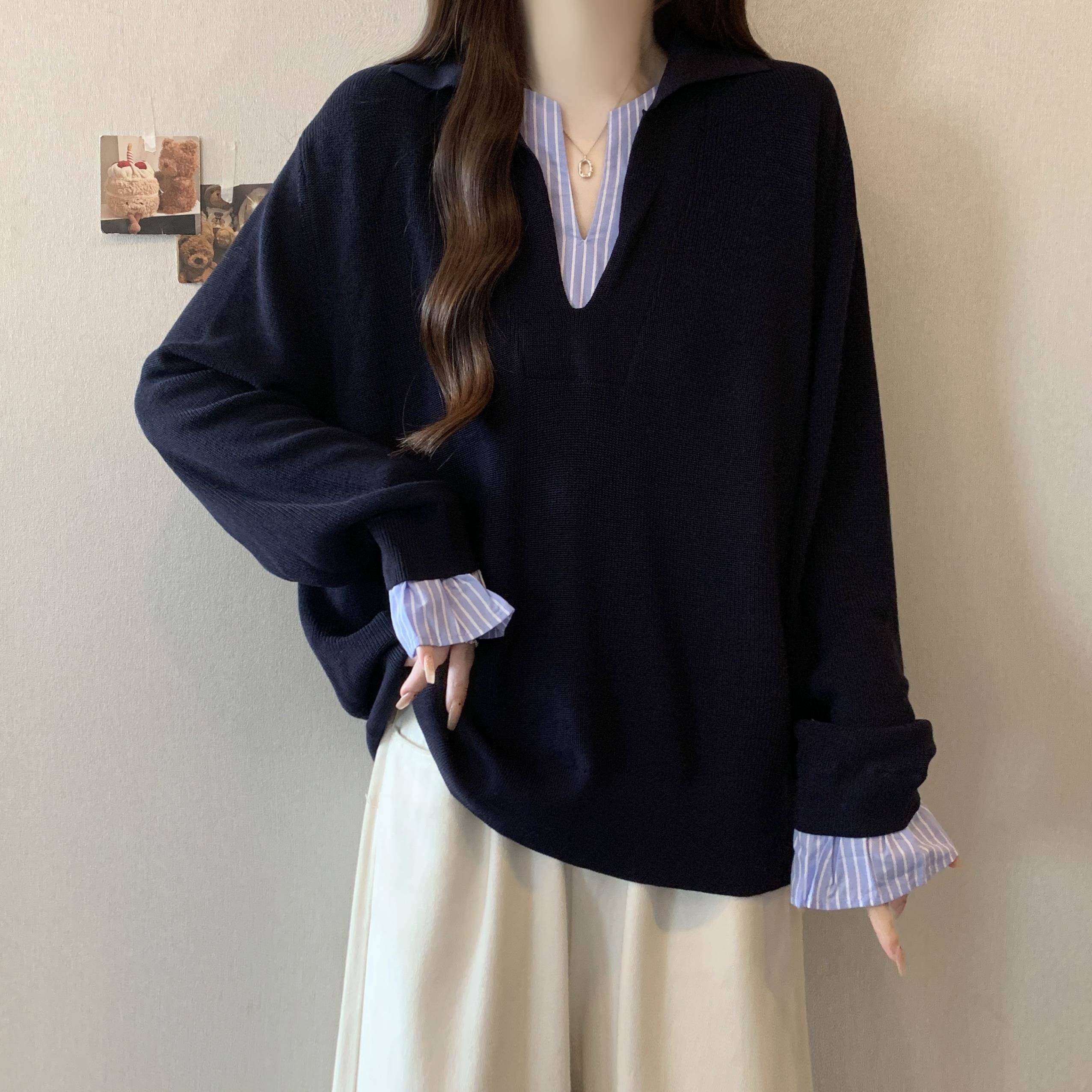 毛衣女半开襟条纹拼接气质韩系氛围 唐狮2025年秋冬新款 双11预售
