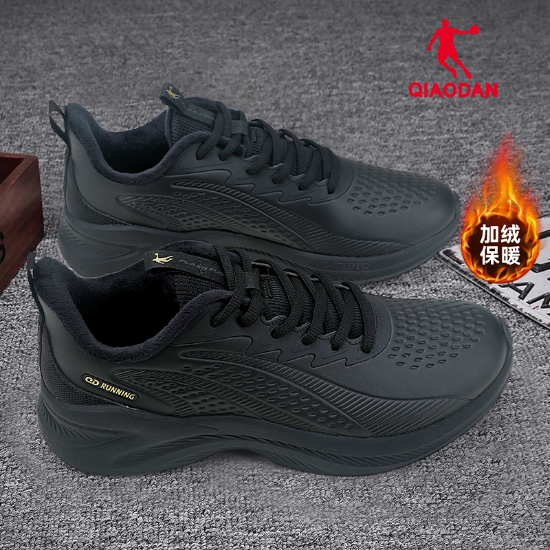 2025新款 子男款 秋季 皮面防泼水跑步鞋 休闲软底 黑色运动鞋 回力男鞋