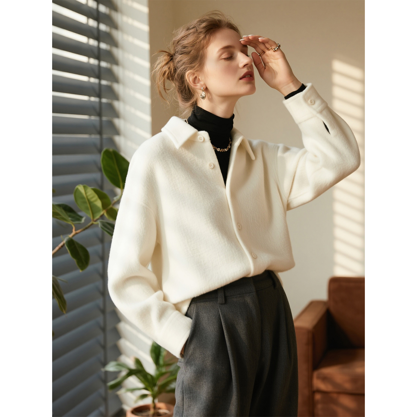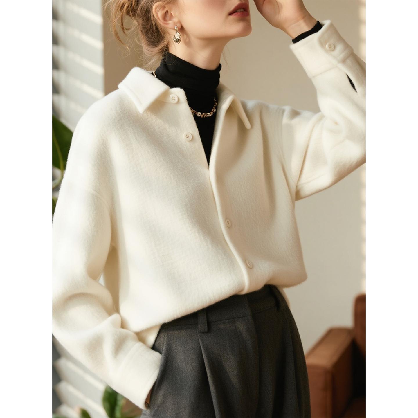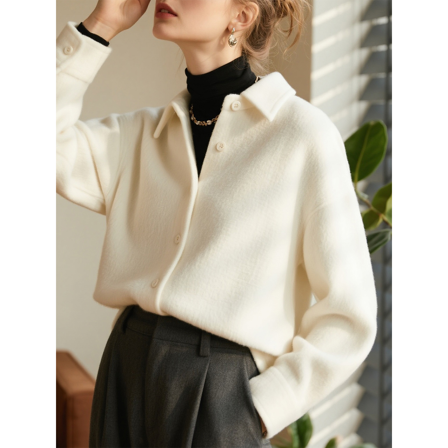 正装 POLOWALK纯棉白色衬衫 长袖 修身 白衬衣内搭休闲 女上衣秋冬新款