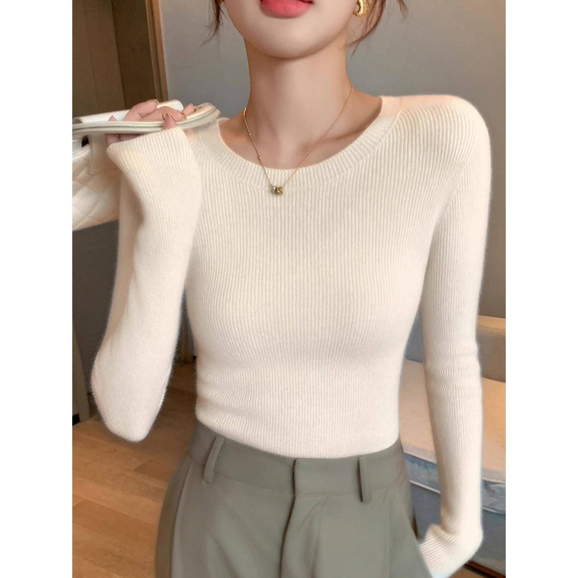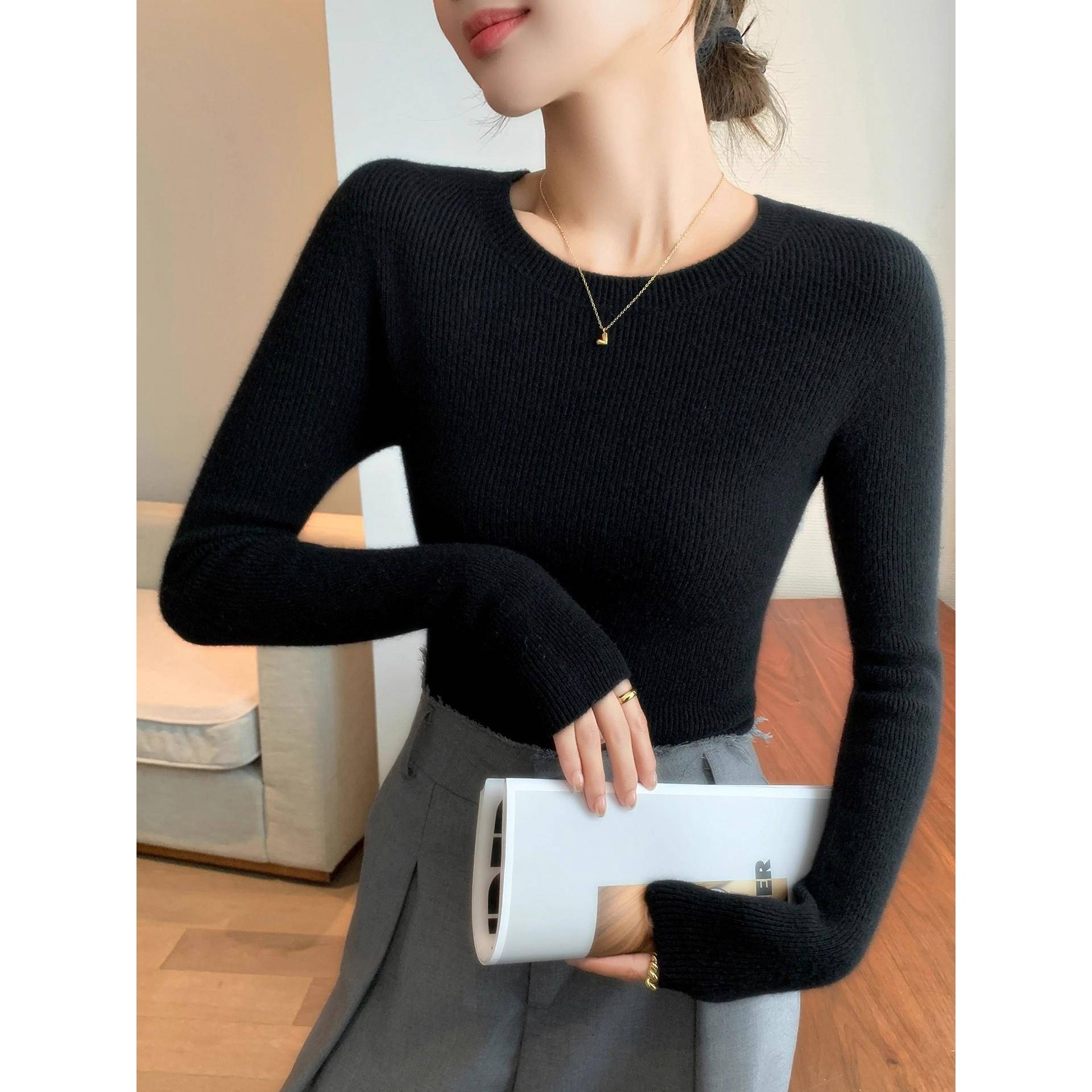 1007u 显瘦内搭洋气减龄针织打底衫 圆领毛衣女秋冬新款 修身