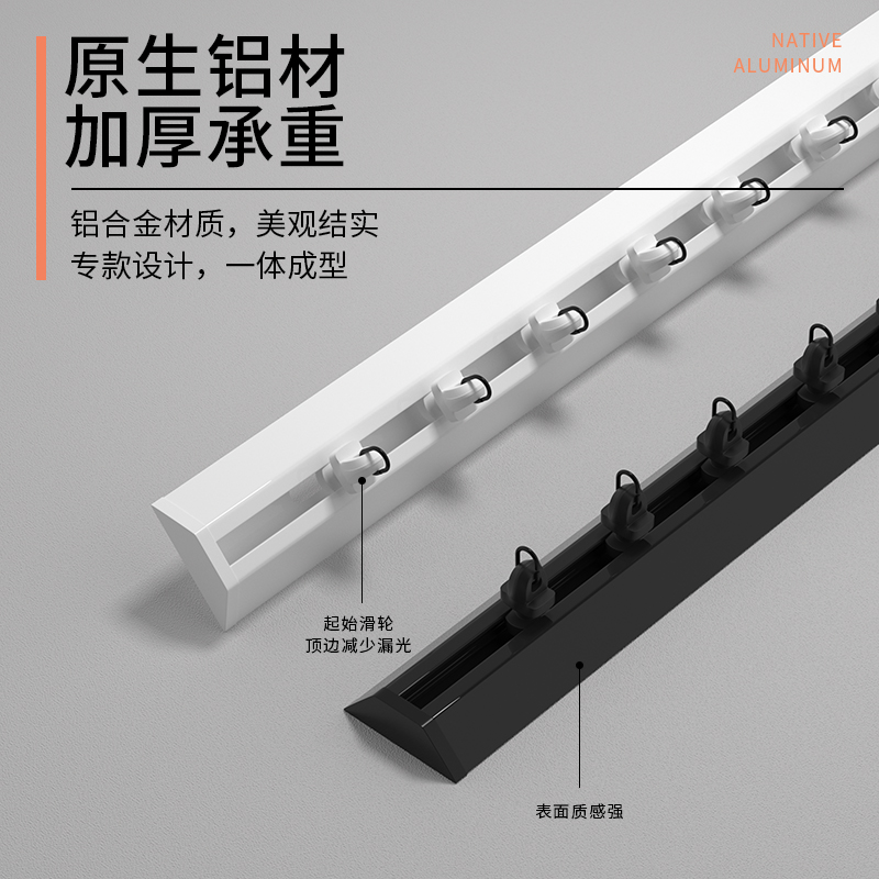 超薄窗帘轨道v型隐形轨道静音滑轨明装 铝合金滑轨 窗帘滑道顶侧装