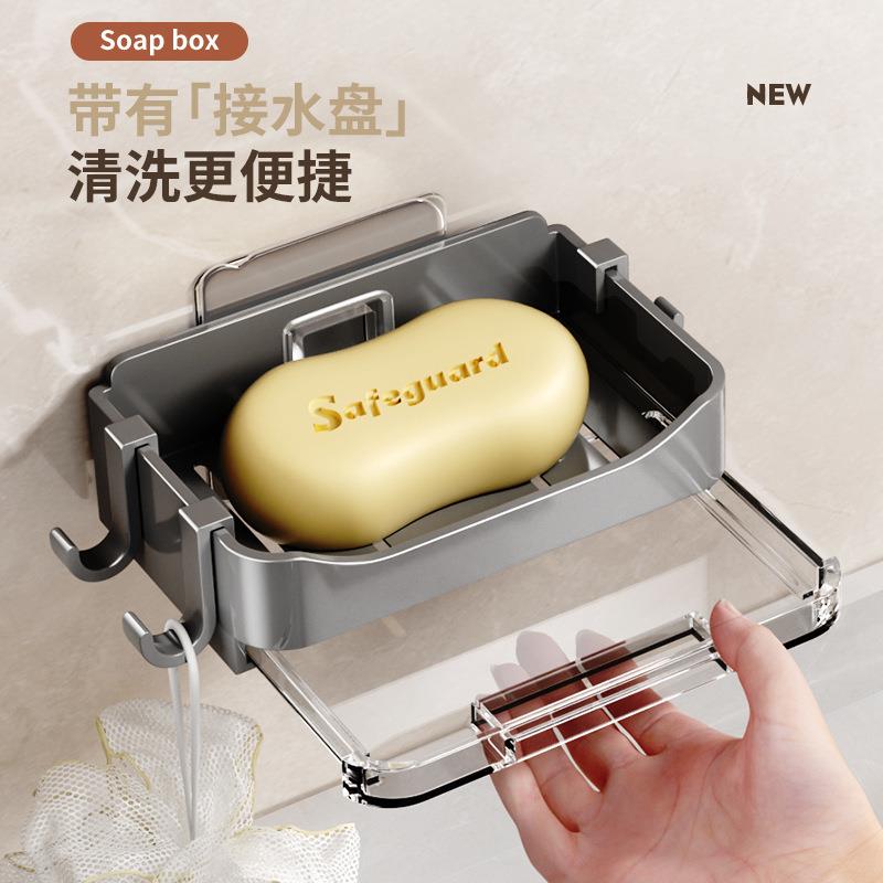 免打孔肥皂盒壁挂式 卫生间双层肥皂沥水盒家用浴室墙上香皂置物架