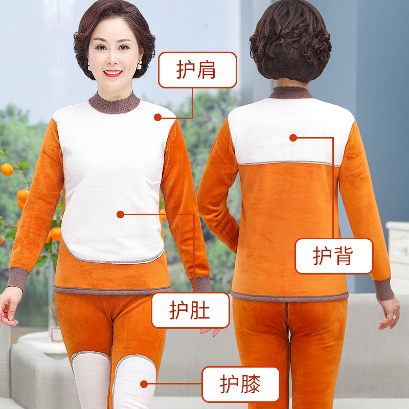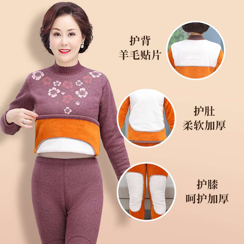 上衣 加绒加厚发热羊毛蚕丝秋衣秋裤 德绒保暖内衣女士套装 秋冬季